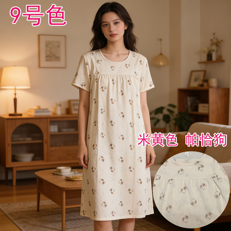 胖MM可爱云朵棉短袖睡裙印花薄中长款连衣裙夏季凉快裙子大码外穿