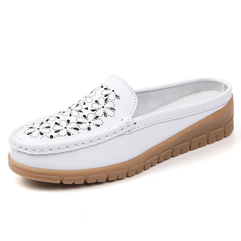 全牛皮断码特价真皮半包拖鞋女2026年夏季新款镂空百搭软底妈妈鞋