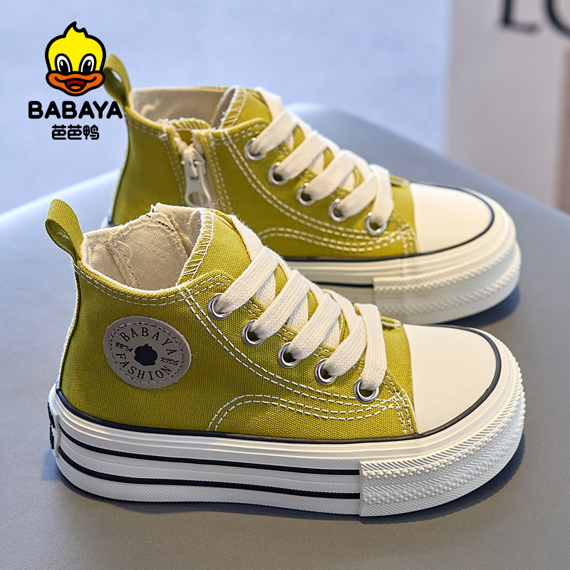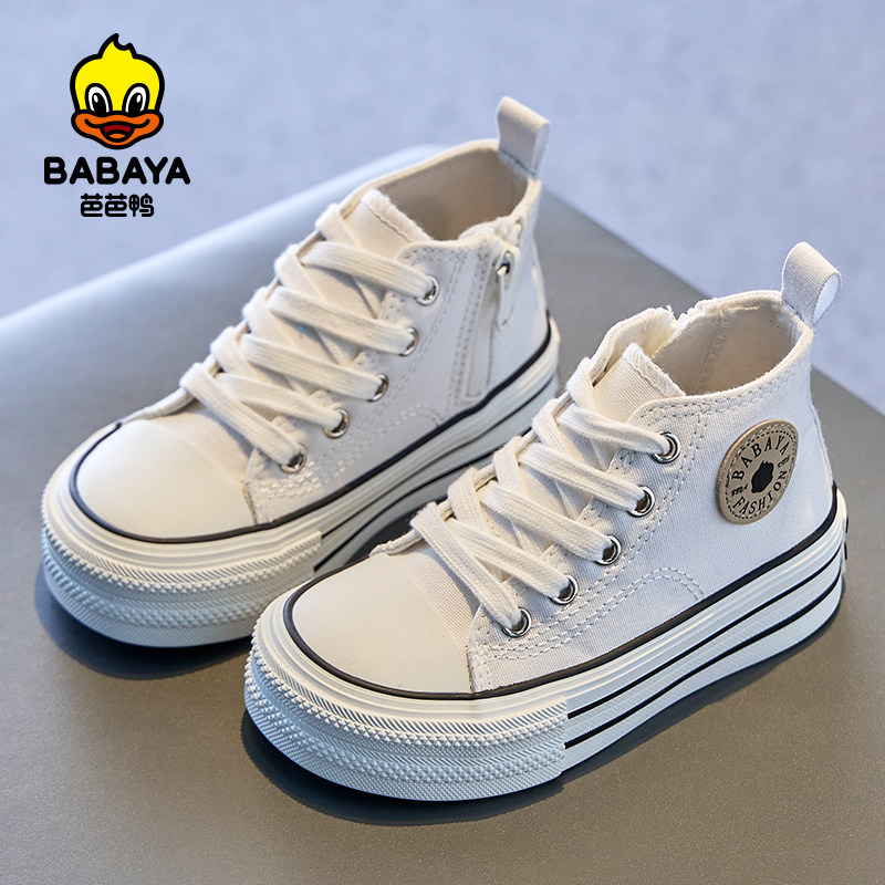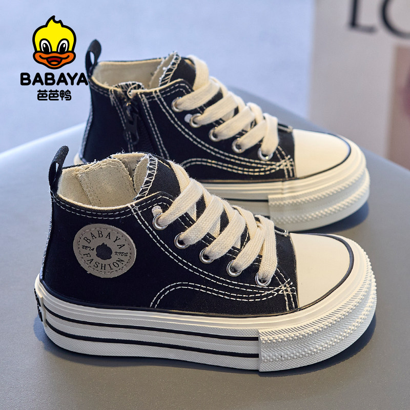 芭芭鸭2026春秋新款儿童帆布鞋男童鞋子透气女童高帮布鞋单鞋软底