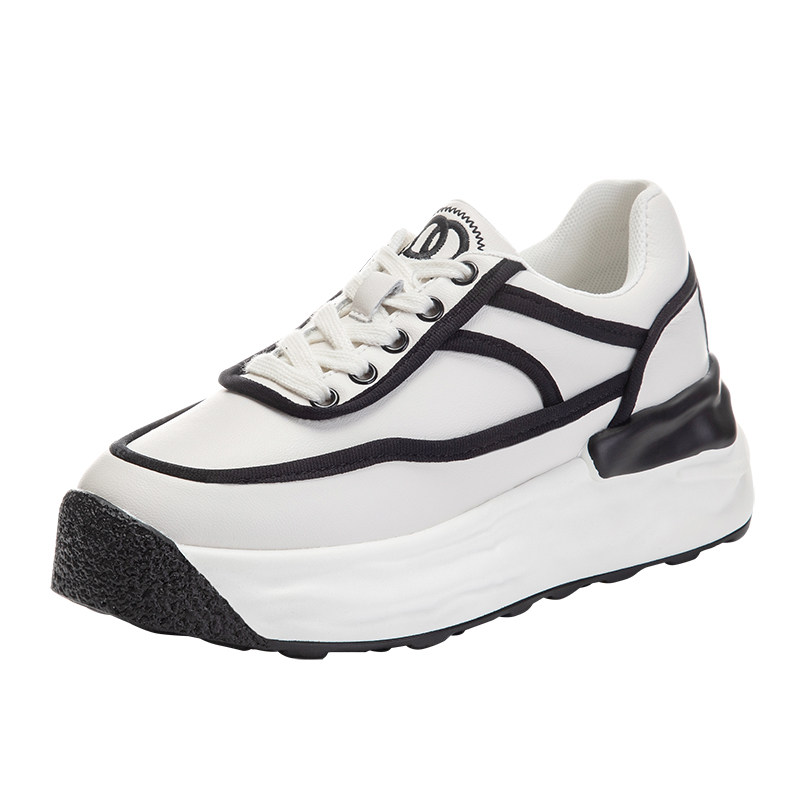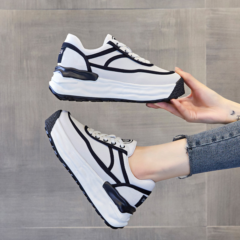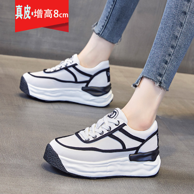 真皮厚底小白鞋女8cm内增高板鞋小个子网面透气休闲运动鞋配裙子