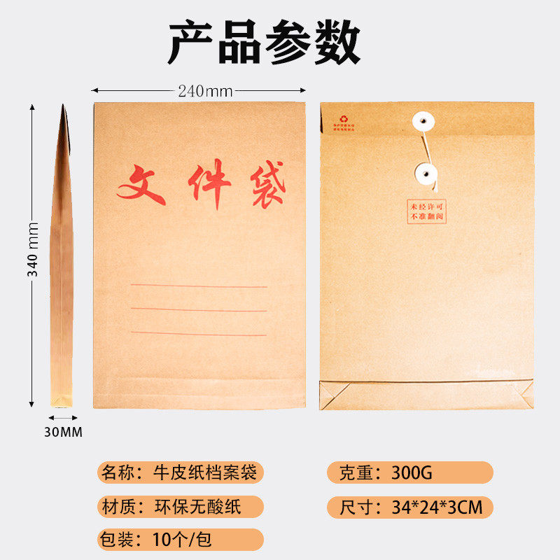 50个装环保酸档案袋牛皮纸A4纸质文件袋文件夹文档文件收纳