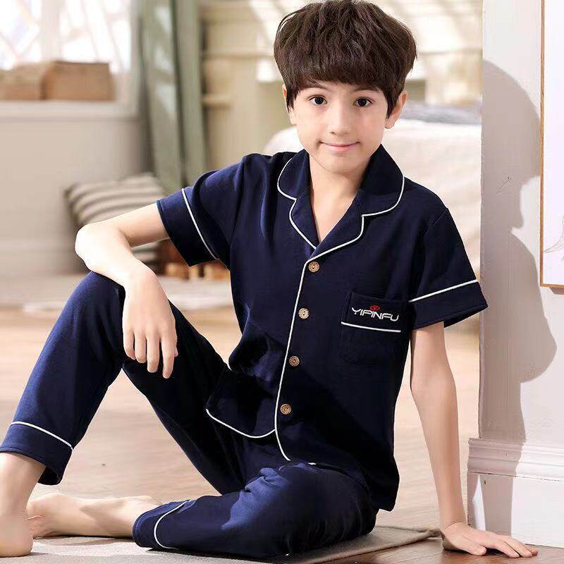 儿童睡衣男童夏季短袖长裤薄款纯棉男孩中大童春秋半袖家居服套装