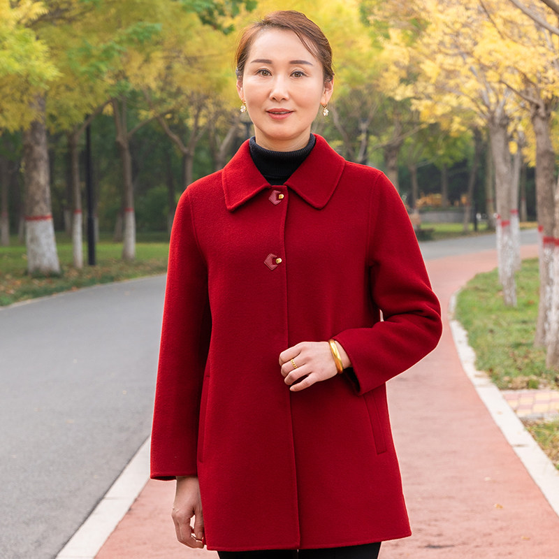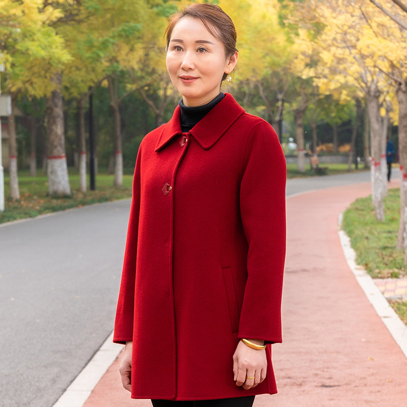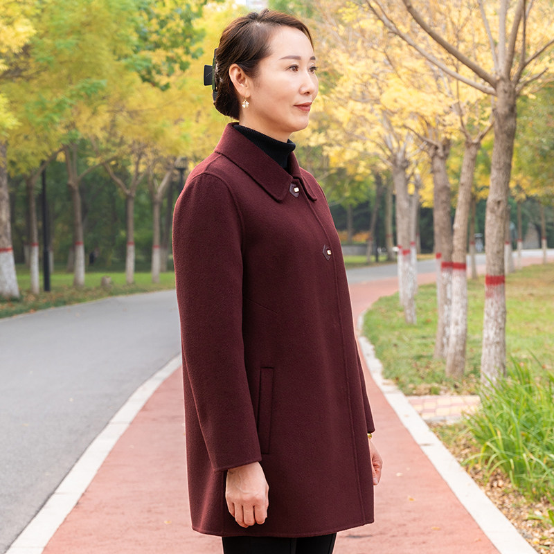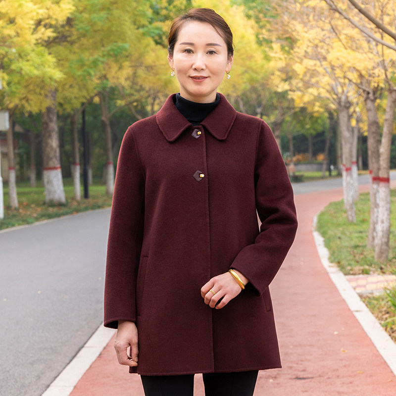 时尚妈妈秋冬外套双面呢羊绒大衣中老年人女秋冬装大码羊毛呢外套