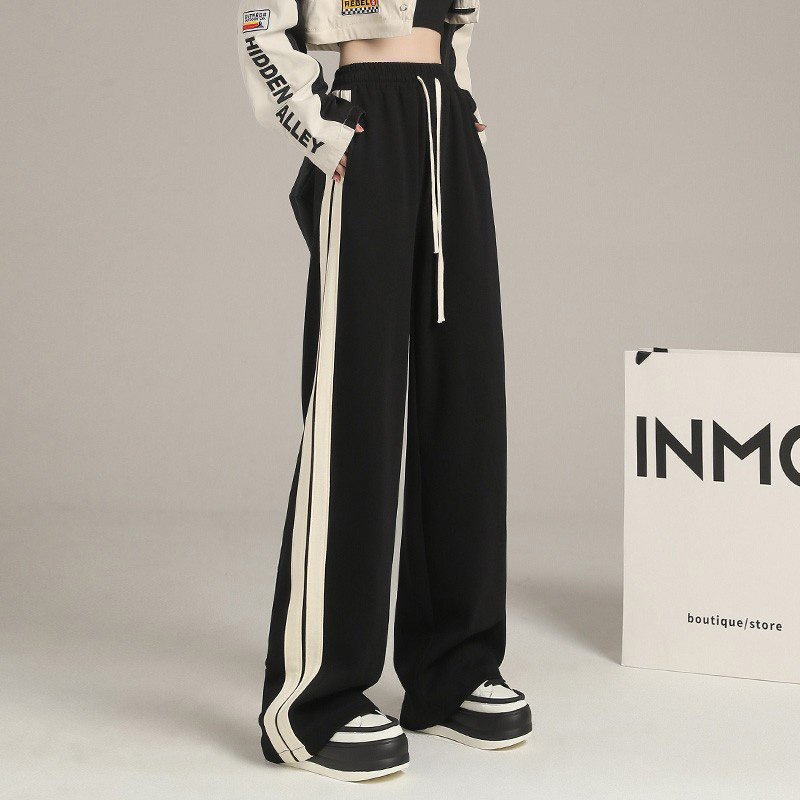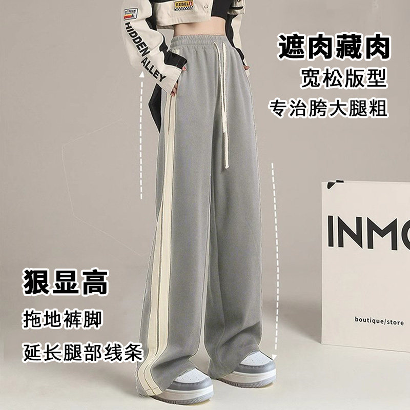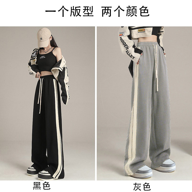 女童黑色裤子春装2026新款儿童直筒阔腿裤中大童春秋运动裤初中生