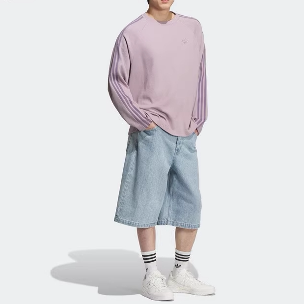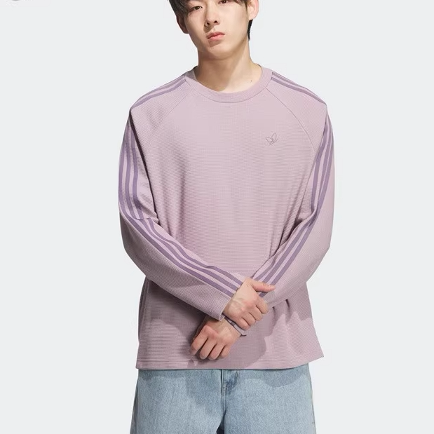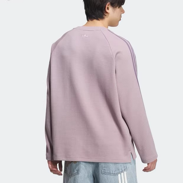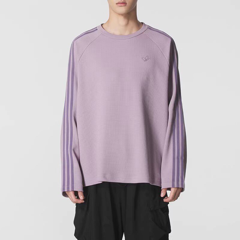 阿迪达斯三叶草男子2026春季新款华夫格休闲长袖圆领T恤KH1175