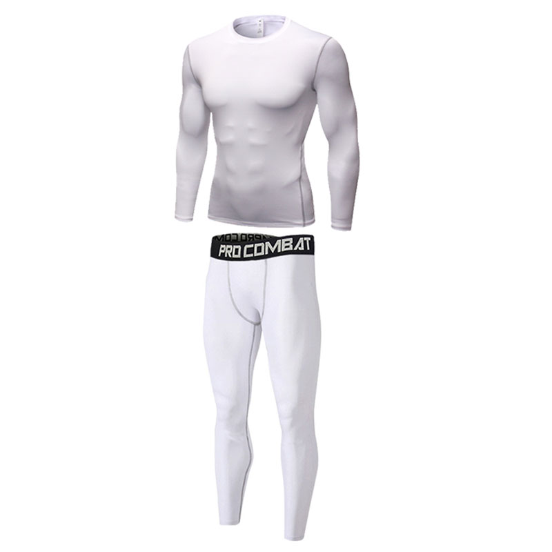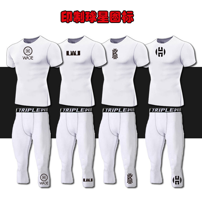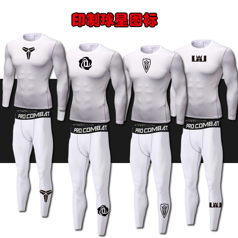 篮球紧身衣打底运动套装男 nba科比高弹长袖速干白色训练服健身裤