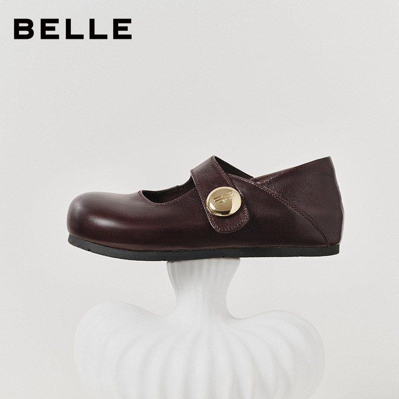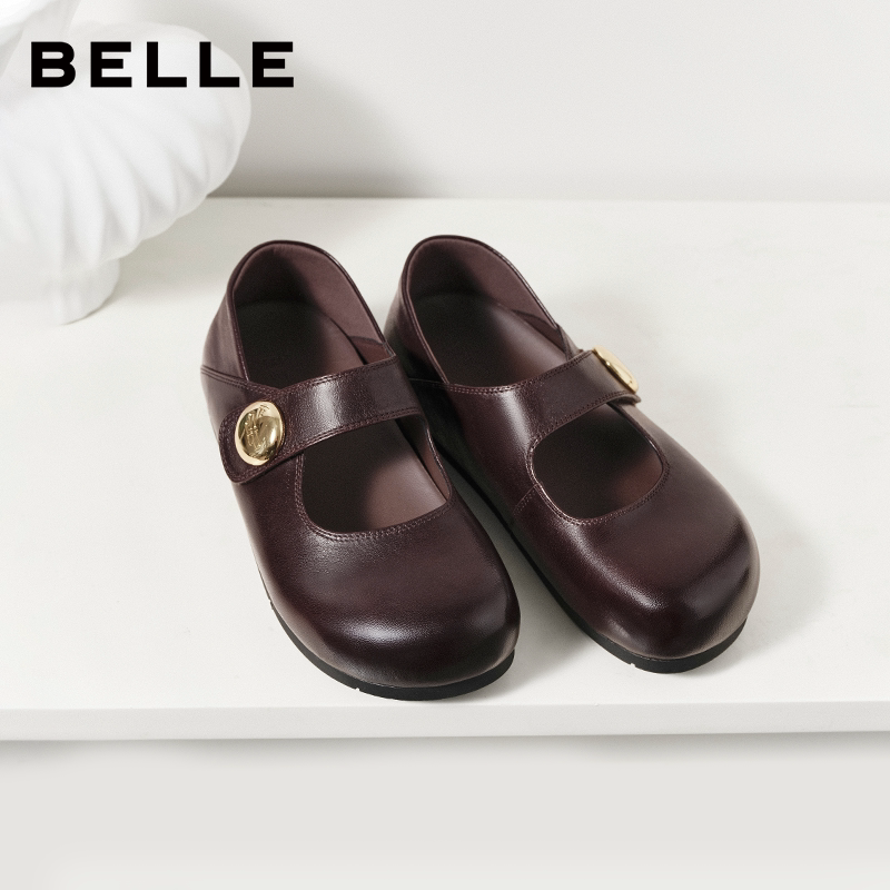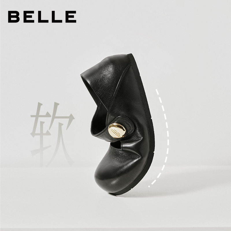 百丽羊皮内增高厚底勃肯玛丽珍鞋女2026春季新款单鞋子B3095AQ6预