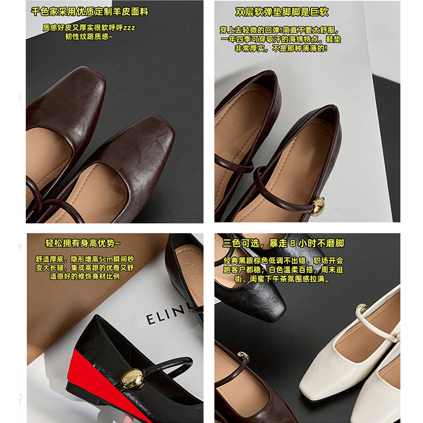 羊皮版~法式复古方头玛丽珍鞋女2026新款一字扣带内增高软底单鞋