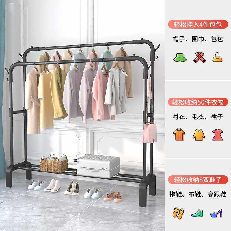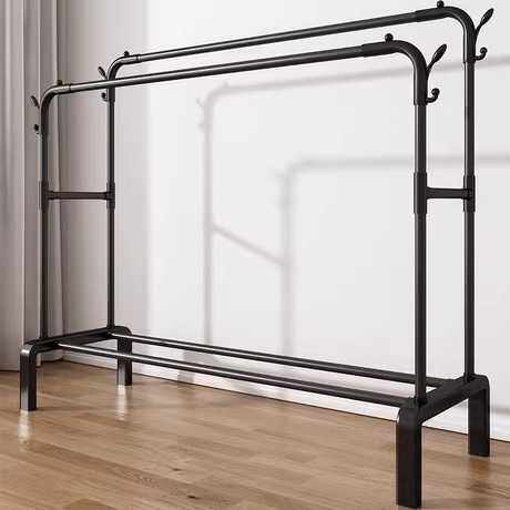 塑料结合款晾衣架家用落地式阳台衣帽架卧室收纳晾衣杆折叠挂衣架