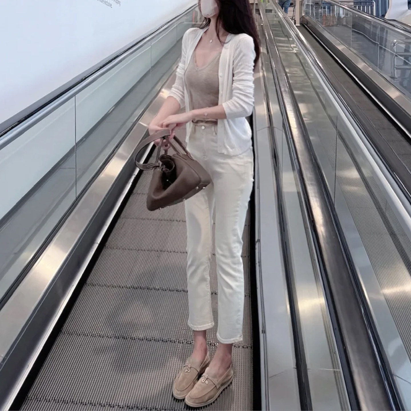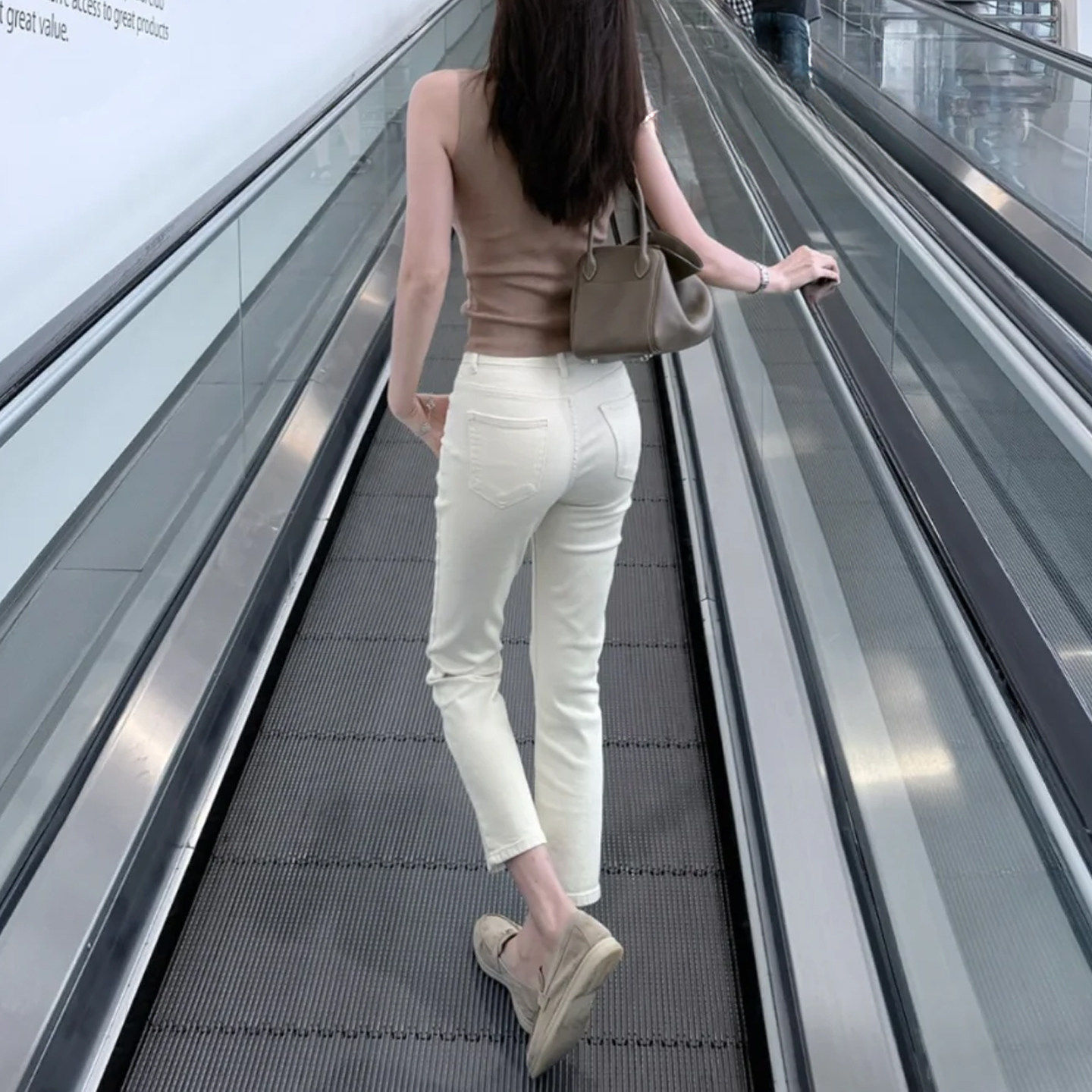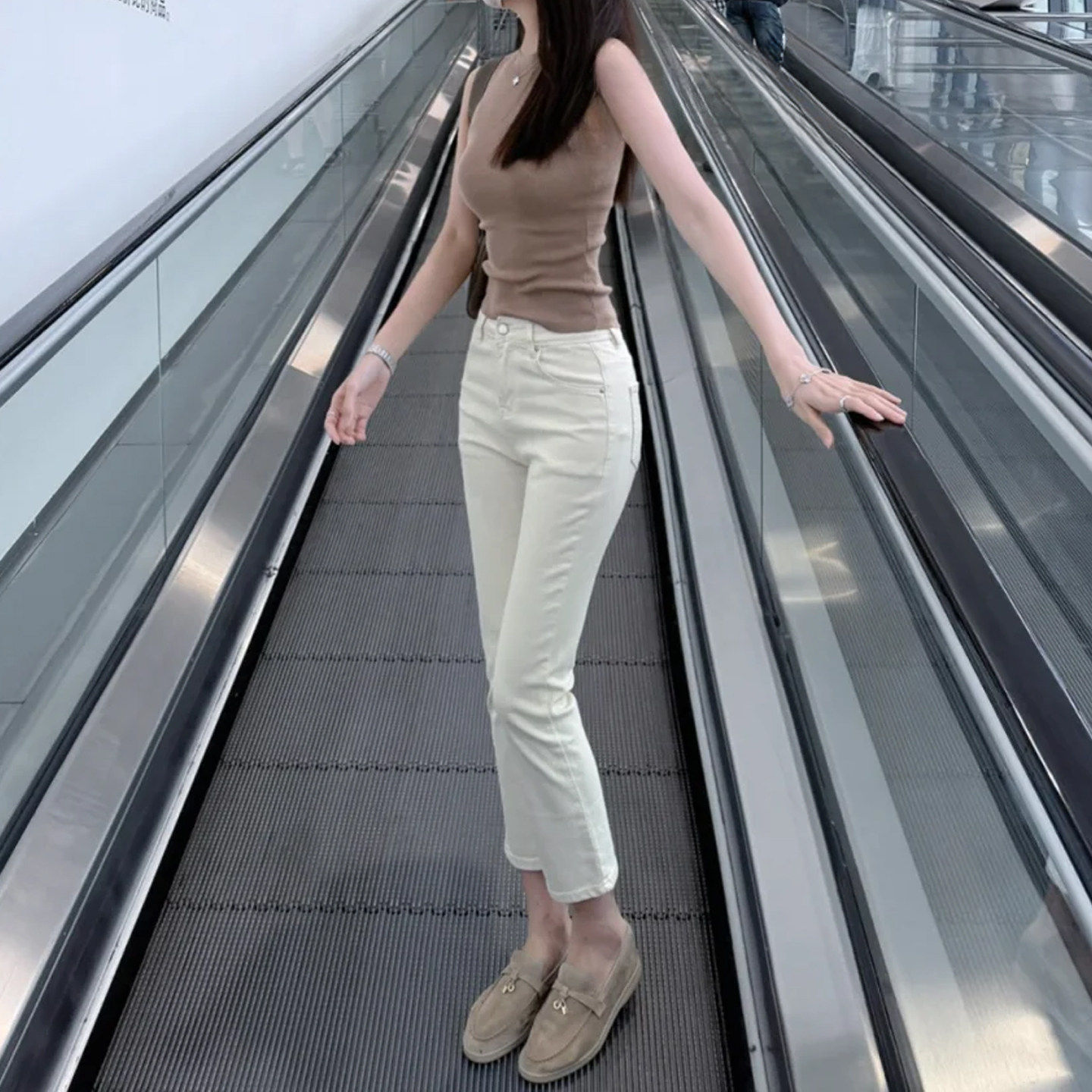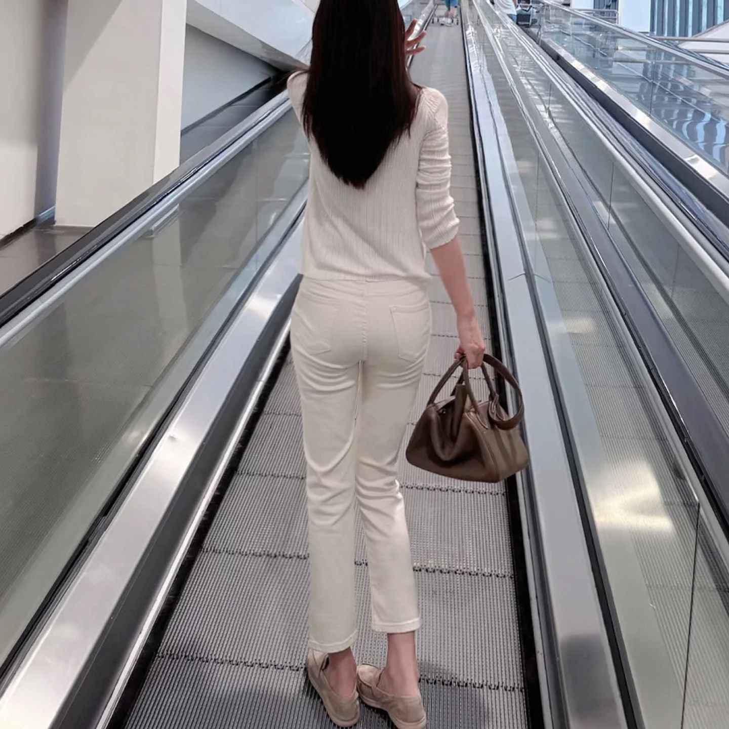 裤子女款爆款2026新款高腰时尚百搭显瘦小个子九分烟管白色牛仔裤