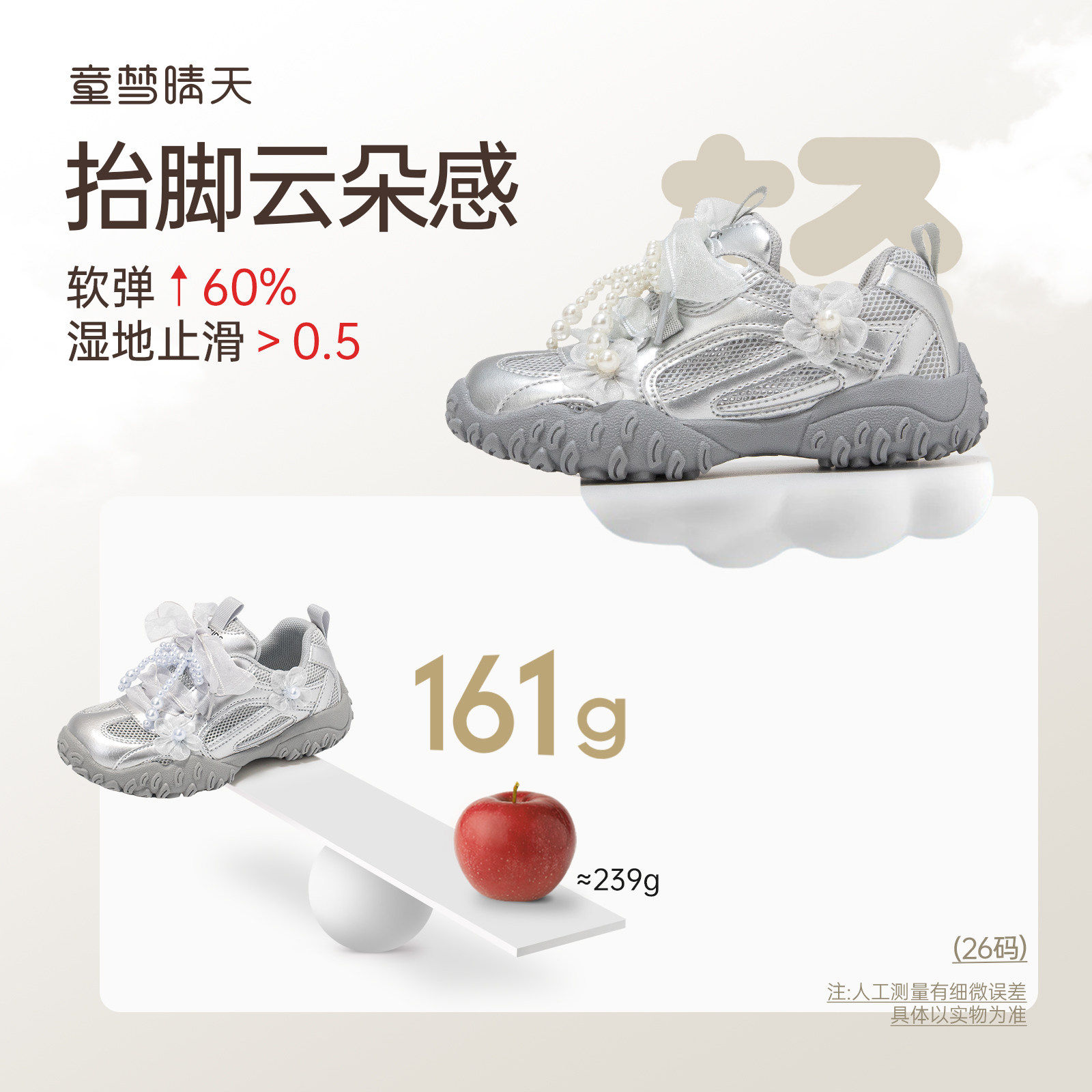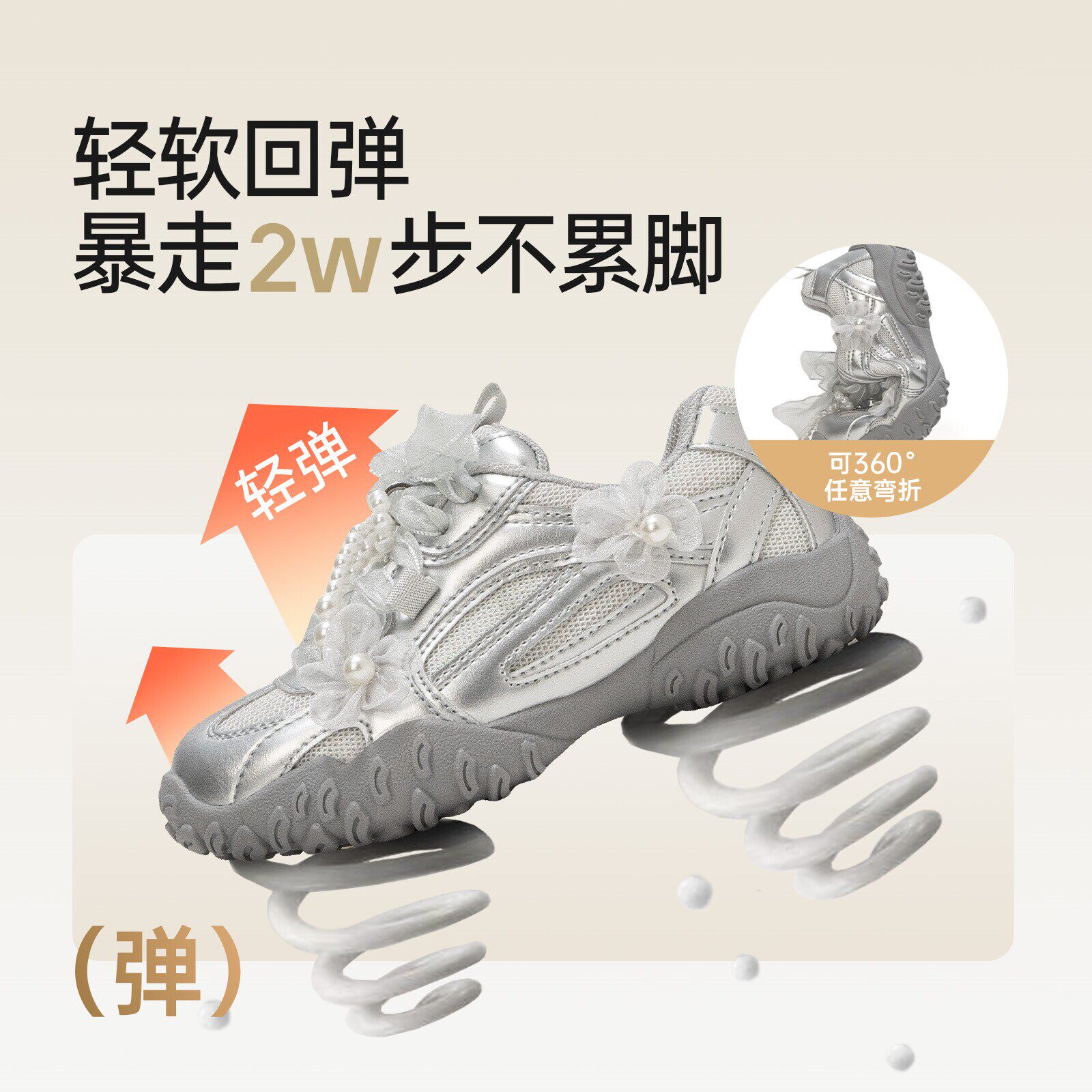 女童鞋子2026新款儿童运动鞋春夏女孩银色公主德训鞋大童春款网面