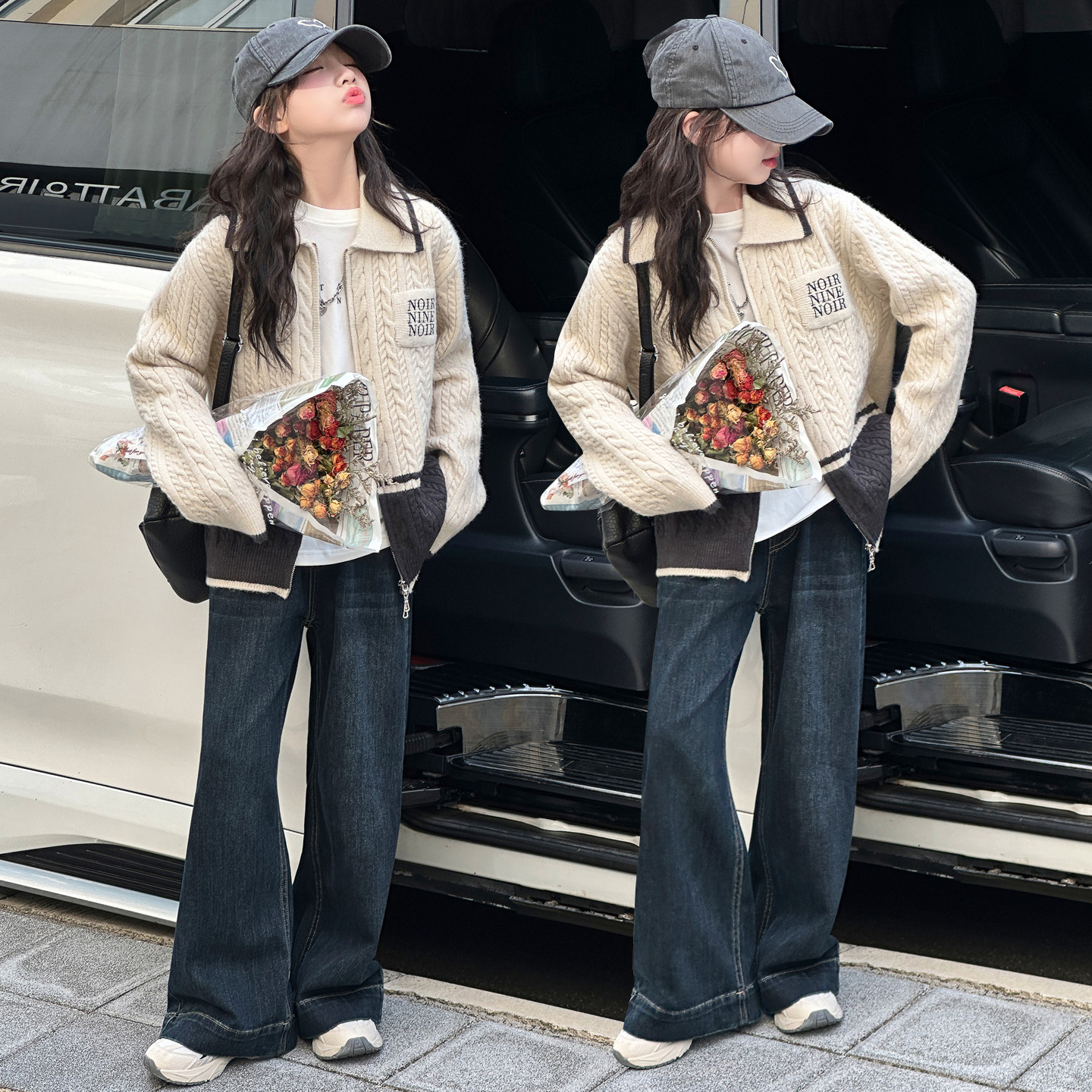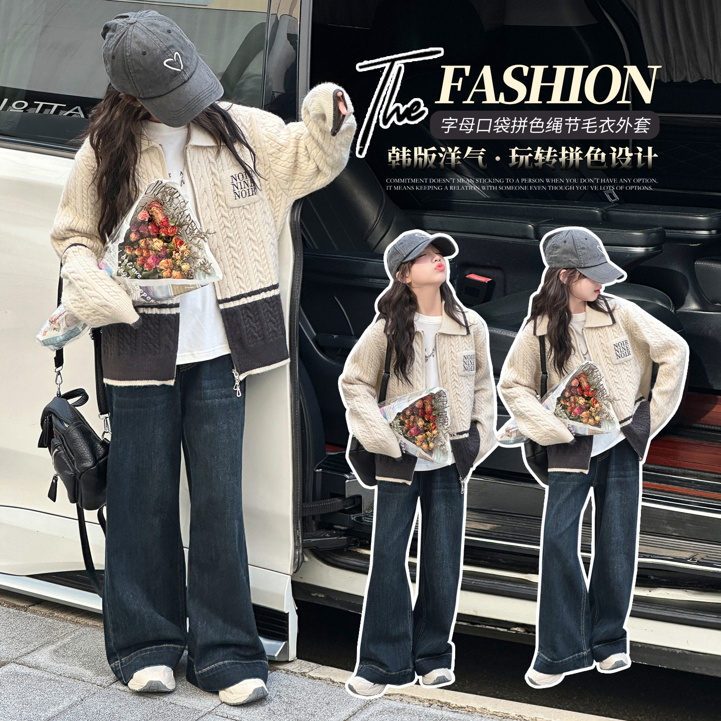 女童毛衣2026新款春秋儿童洋气时髦中大童韩版双拉链针织外套上衣