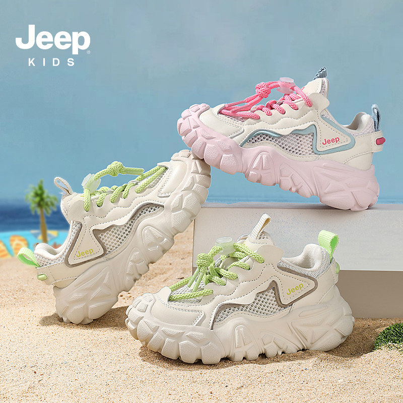 Jeep儿童鞋网面透气女童运动鞋2026夏季新款男童休闲鞋轻便老爹鞋