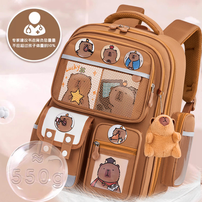 卡皮巴拉书包男初中生耐脏护脊超轻背包女生大容量可爱水豚双肩包
