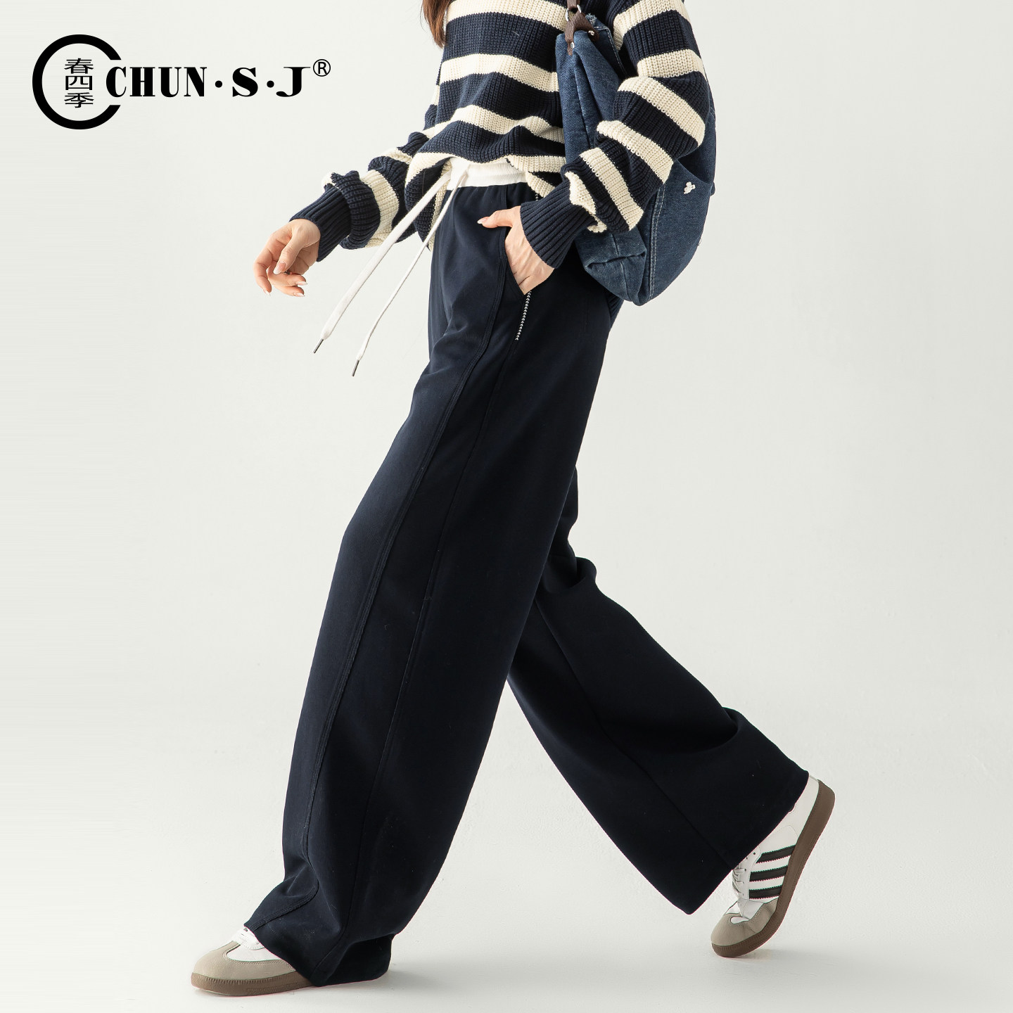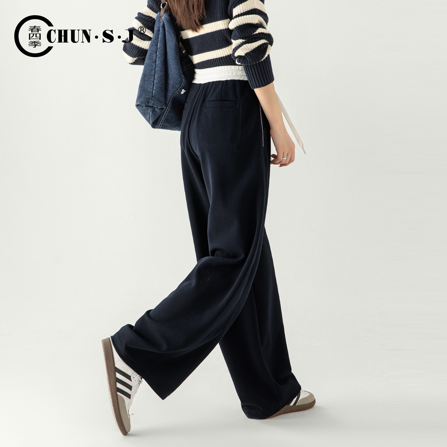 高级感藏蓝色裤子休闲运动裤女款2026新款春季垂感女裤阔腿裤卫裤
