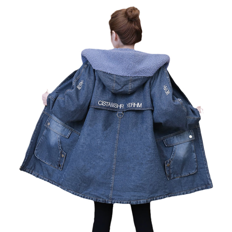 大码女士中长款加绒加厚牛仔棉衣棉服外套女冬季2026新款爆款棉袄