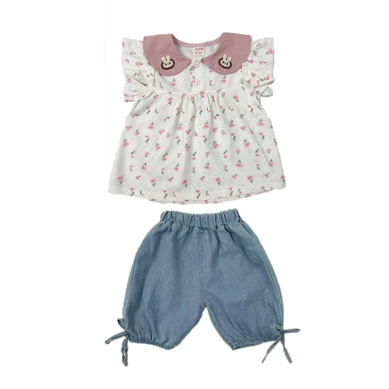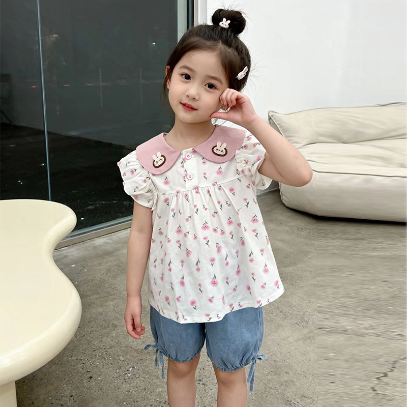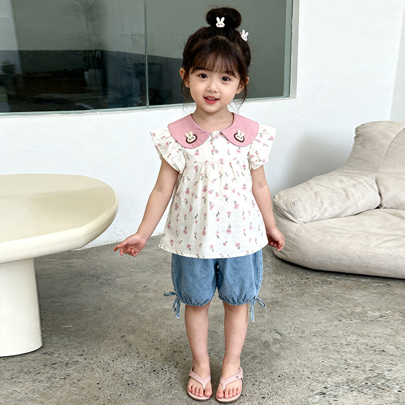 女童夏季短袖套装2026新款韩版洋气女宝宝夏装薄款两件套碎花衣服