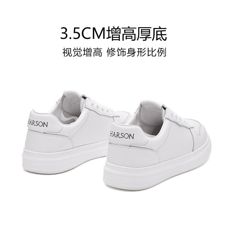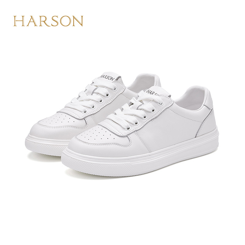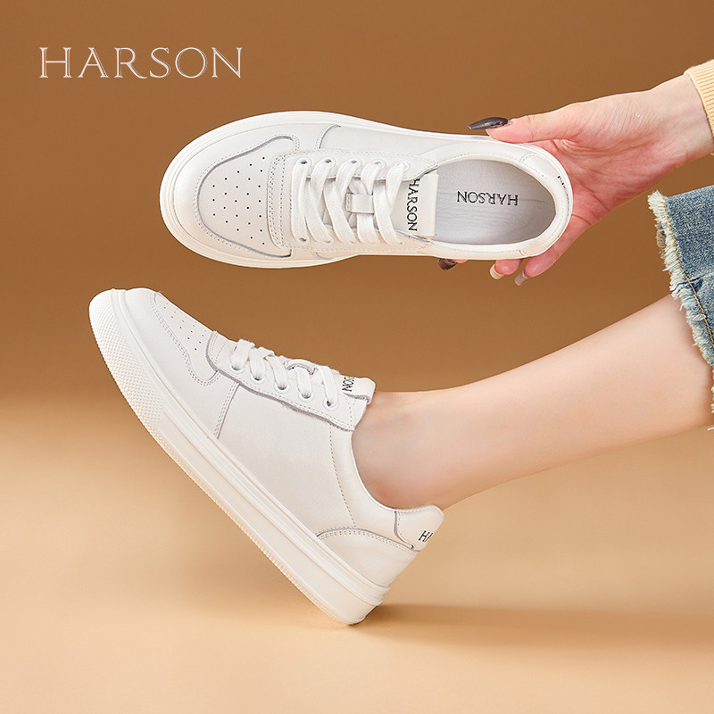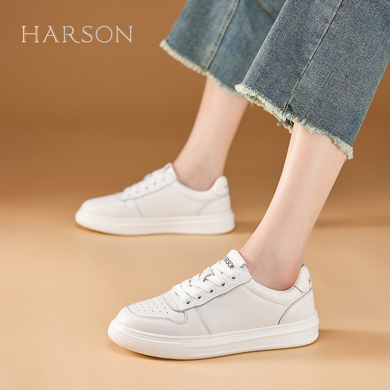 哈森真皮小白鞋女鞋春秋新款百搭时尚舒适运动休闲鞋平底板鞋