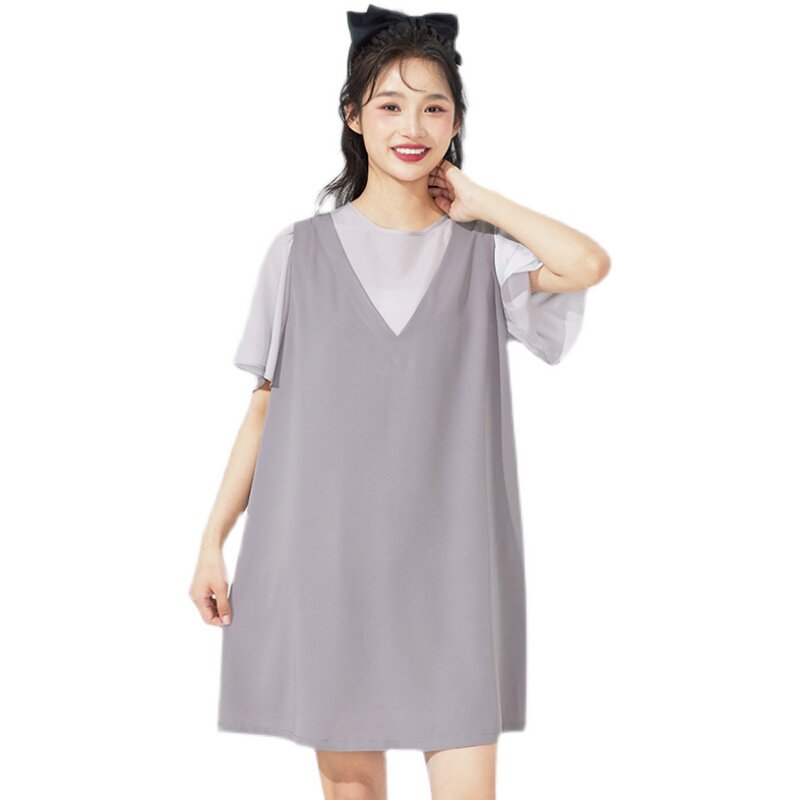 夏装孕妇装孕之彩两件套短袖连衣裙通勤天丝薄款YWQ272353