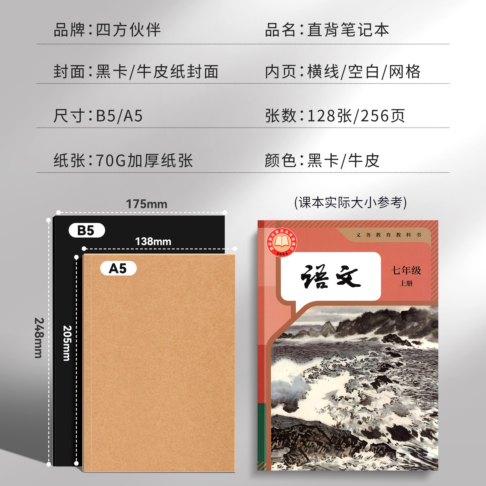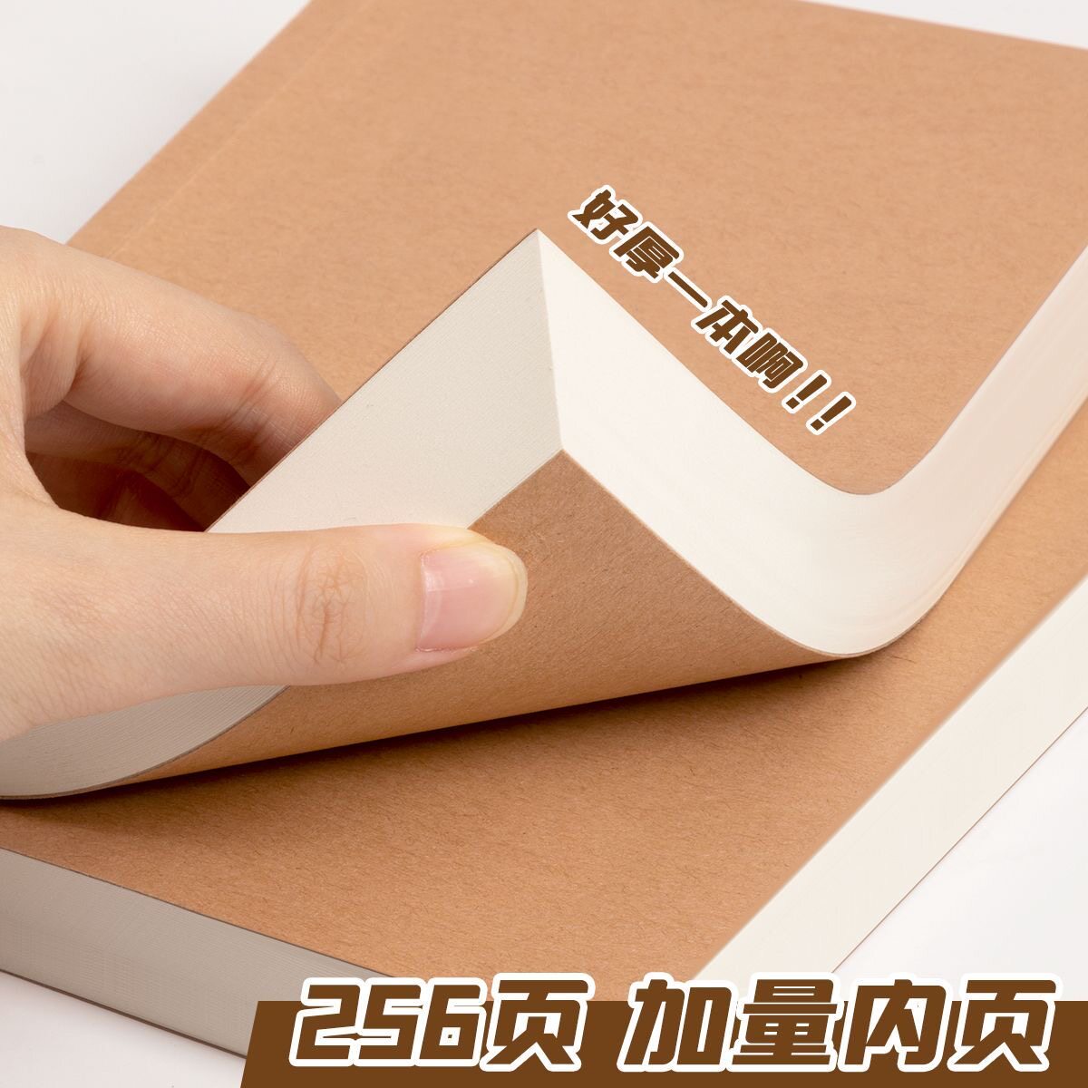 四方伙伴复古牛皮纸笔记本超厚空白本子加厚白纸本草稿本学习可平摊高颜值本记事本日记本b5a5学生用横线方格