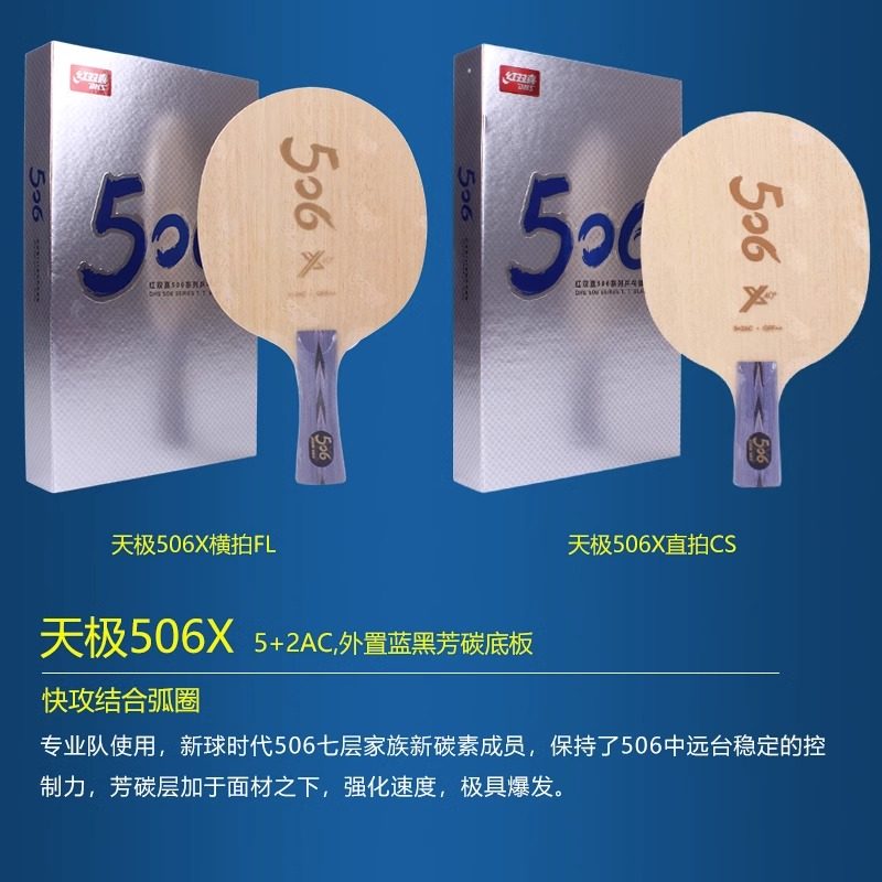 红双喜乒乓球底板天极506X球拍双面A弧圈外置纤维快攻型弧圈球板