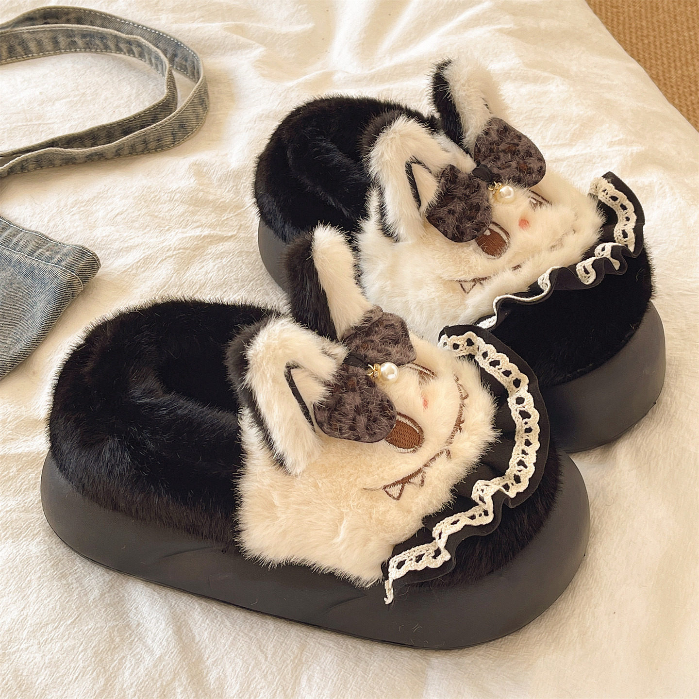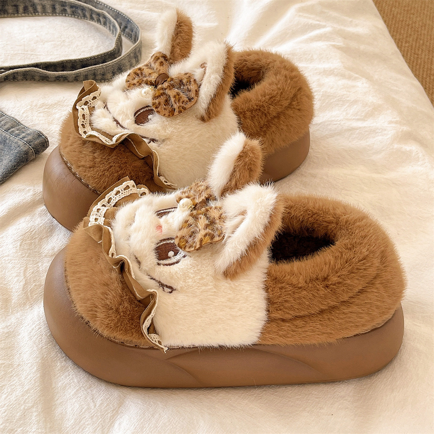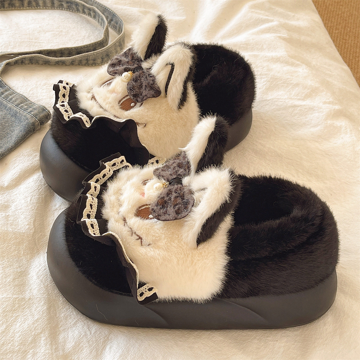 311线报网描述:可爱蝴蝶结搞怪兔子包跟棉鞋,居家外穿都行