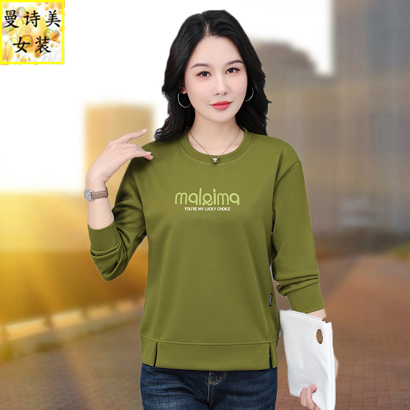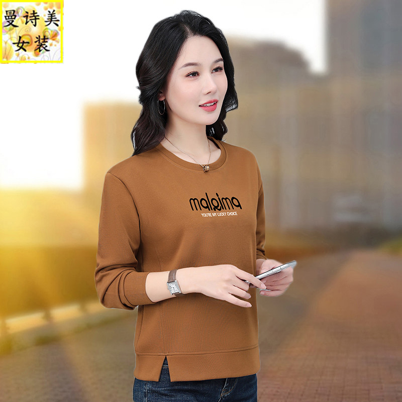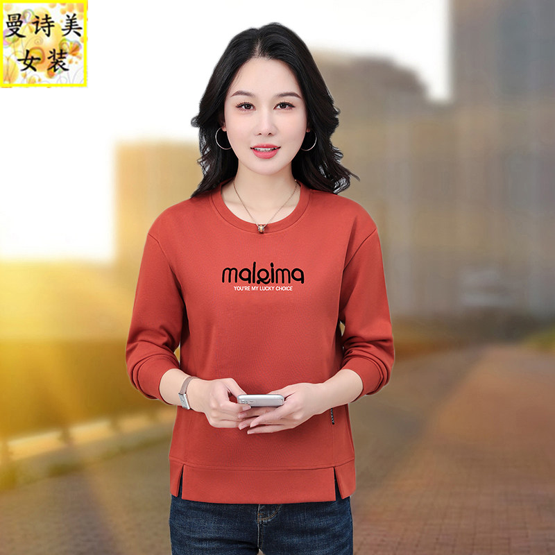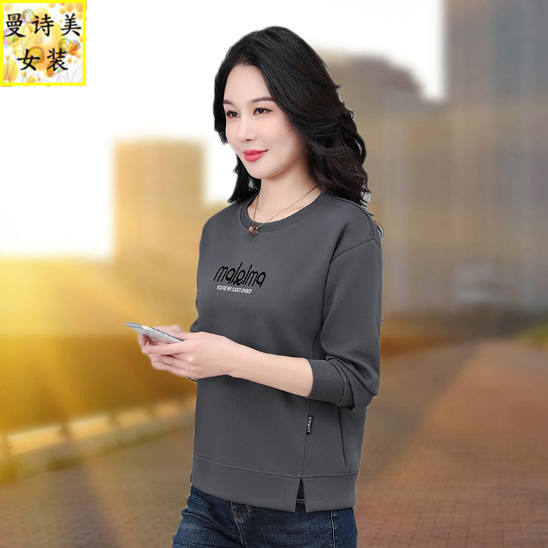圆领卫衣女款2026新款春秋时尚女装中年妈妈早春下摆开叉休闲上衣