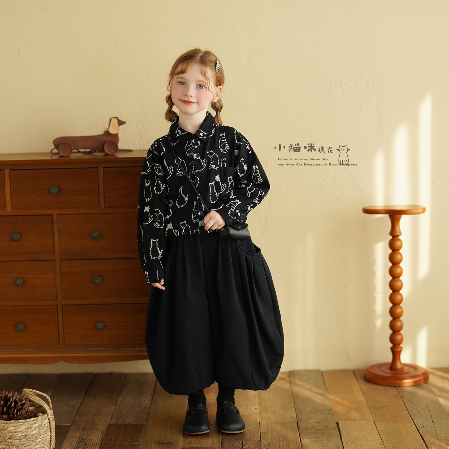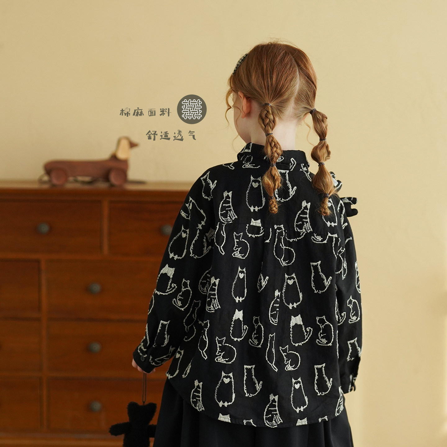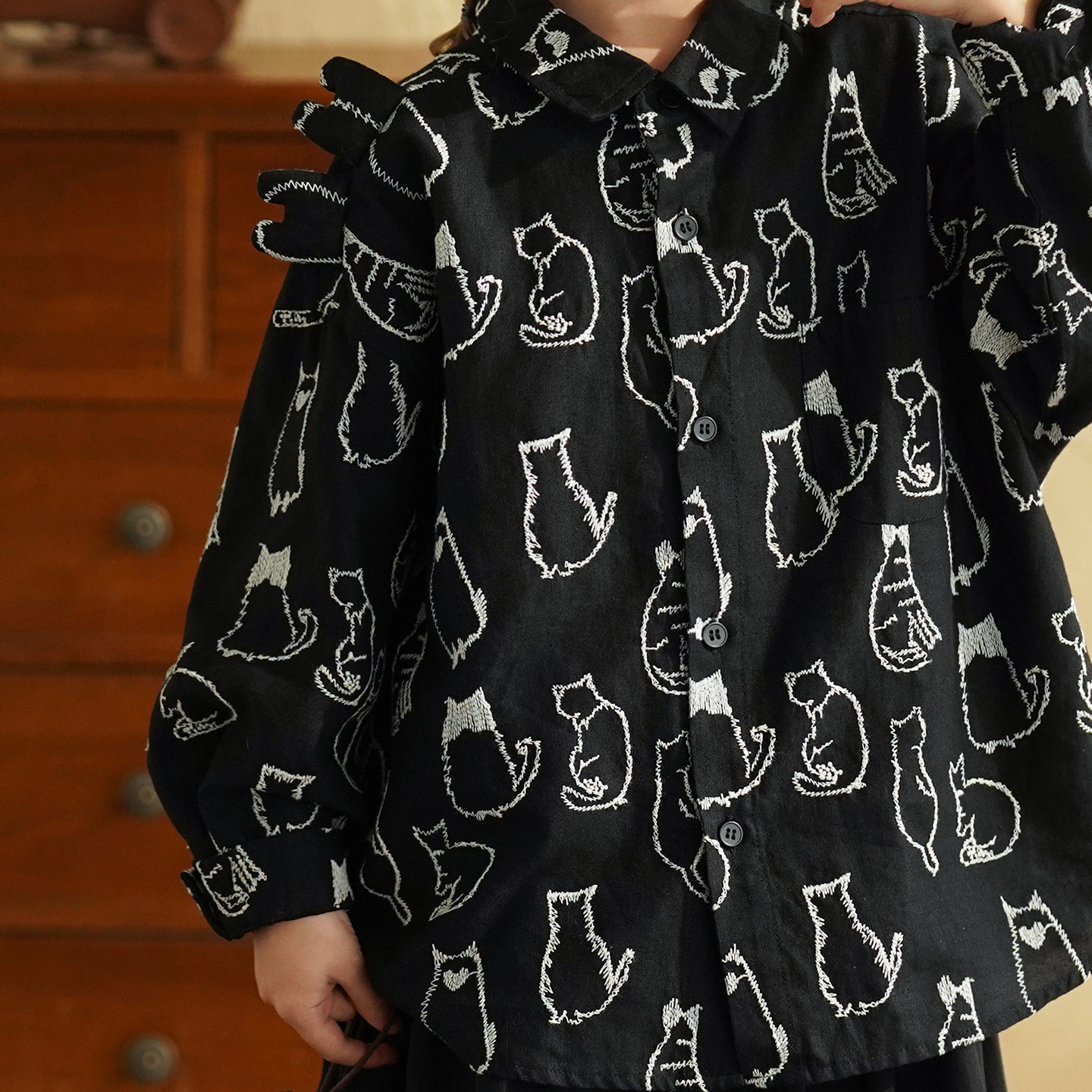砚台家童装女童刺绣黑色衬衫2026春装新款宝宝洋气长袖上衣外套潮