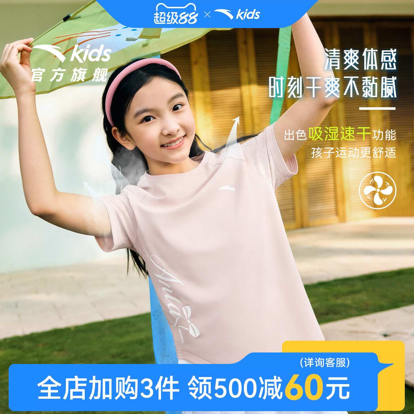 安踏儿童短袖速干衣女童t恤2026夏季新款跑步运动小女孩半袖体恤