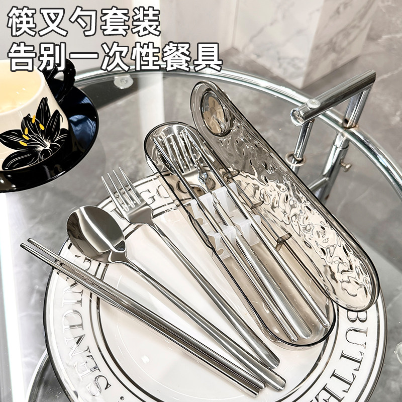 304不锈钢筷子勺子套装便携餐具盒成人上班族小学生一人用收纳盒