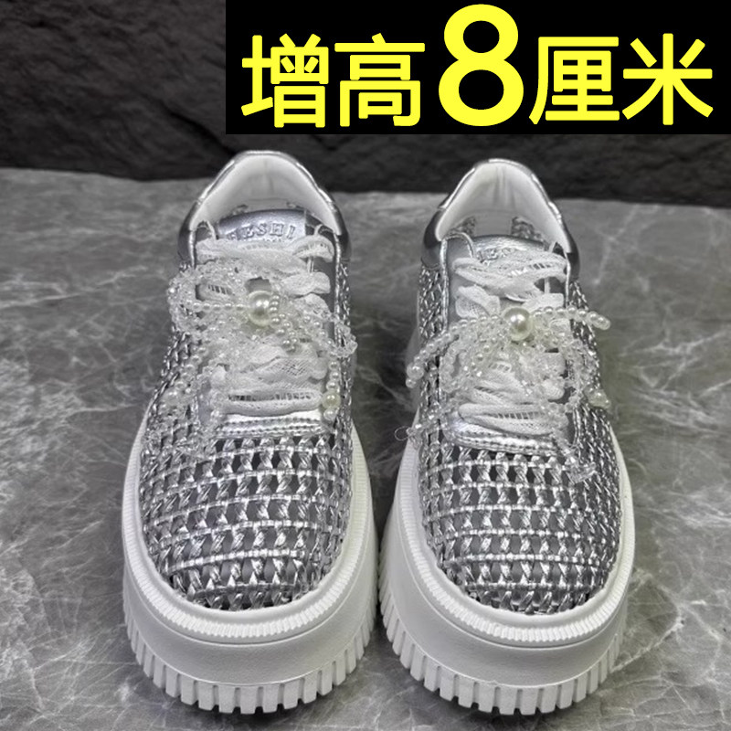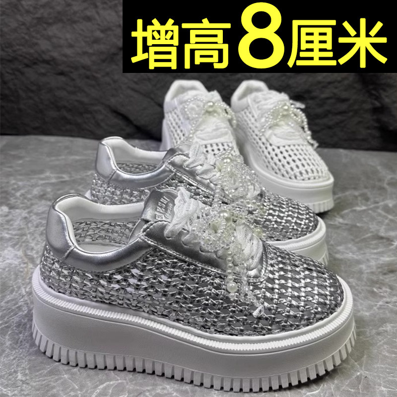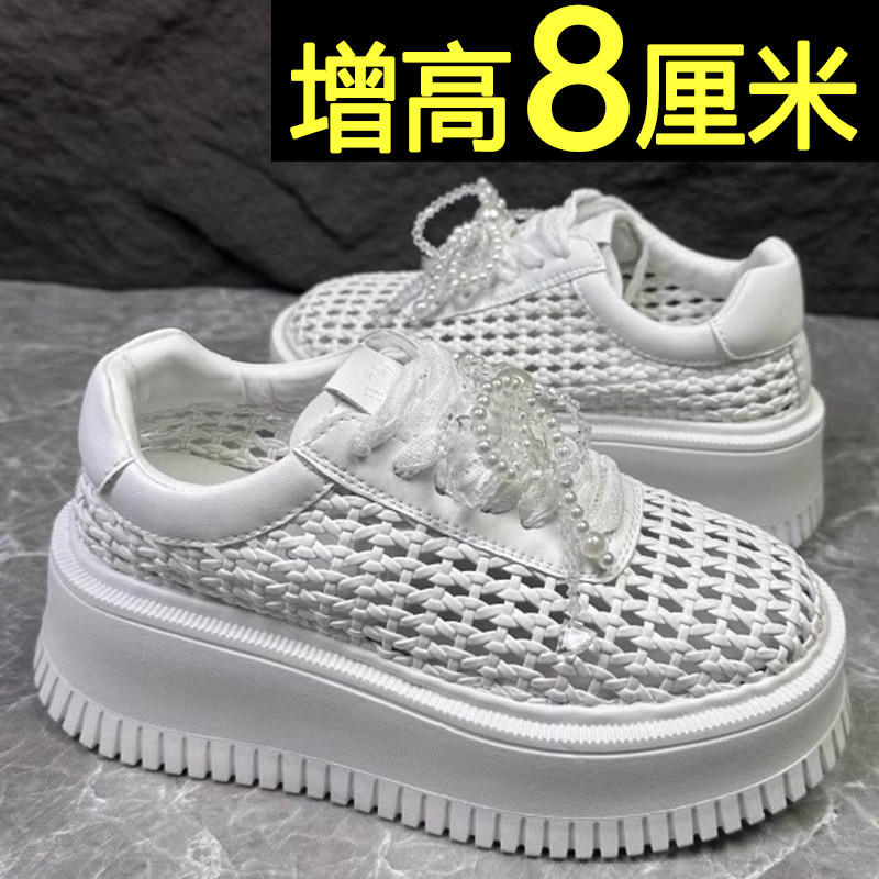 透气厚底板鞋女2026新款夏季内增高休闲运动小白鞋镂空编织洞洞鞋