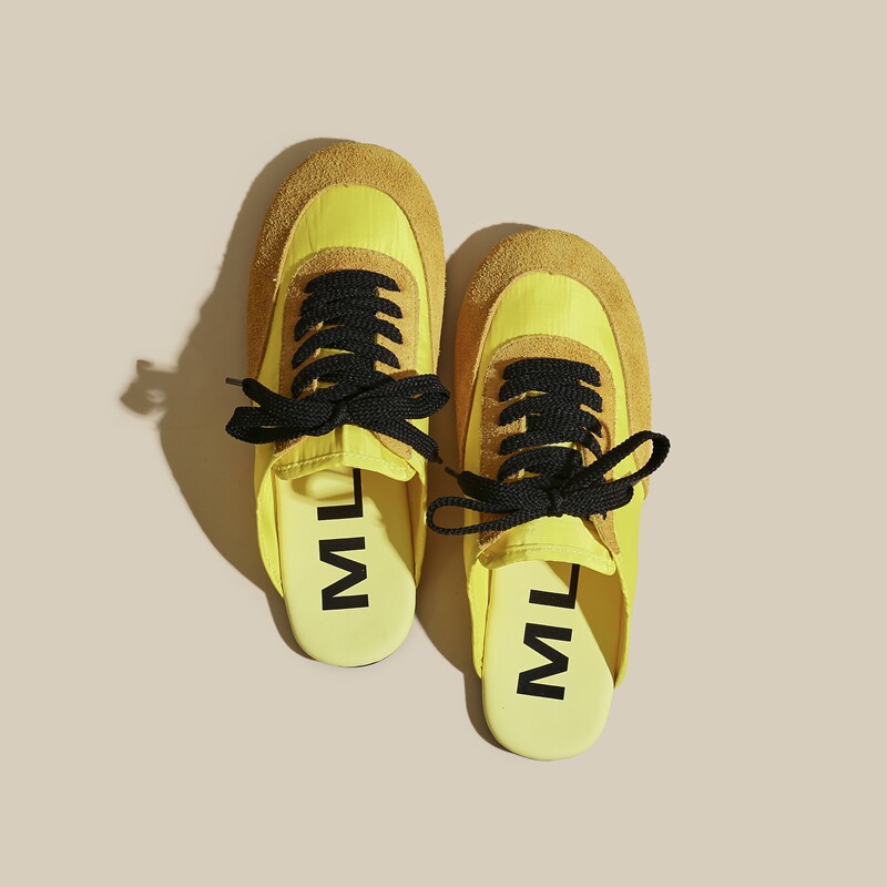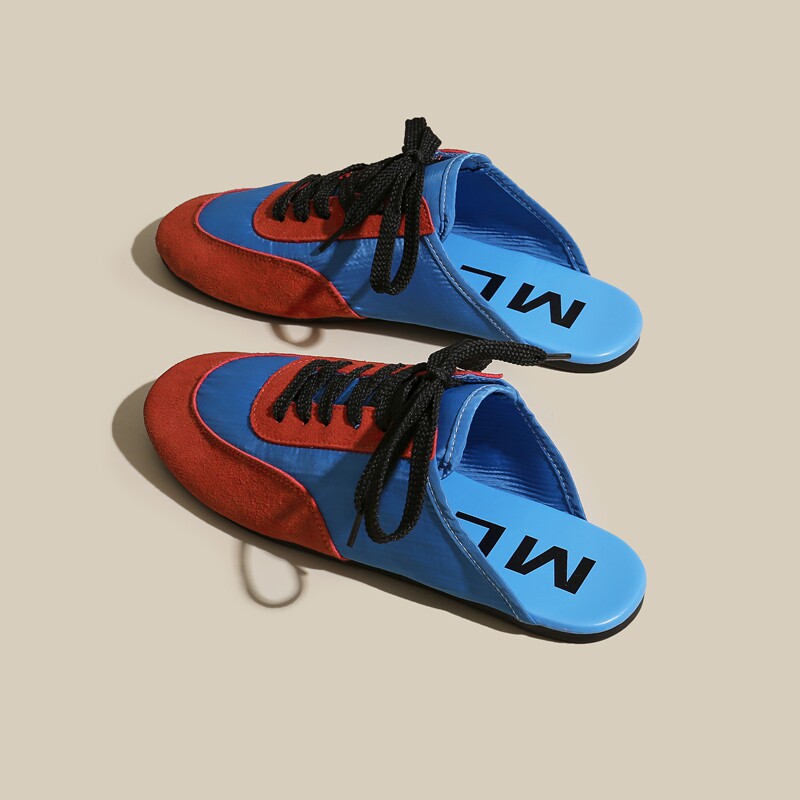 软底超火拼色包头半拖鞋女夏外穿2026春季新款平底懒人一脚蹬凉拖
