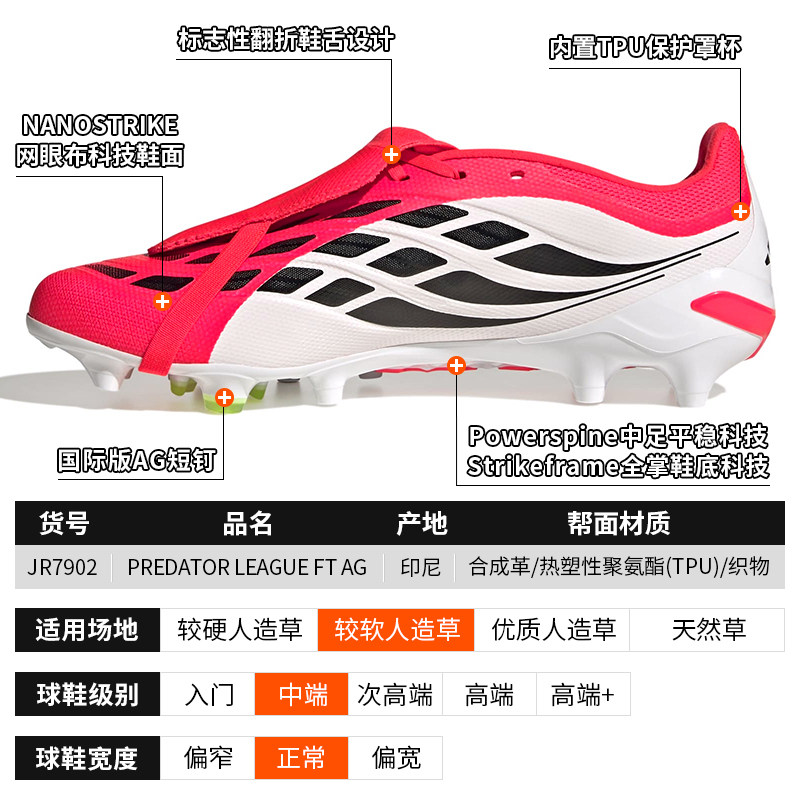 酷锐阿迪达斯国际版猎鹰26中端翻鞋舌AG短钉人草足球鞋男女JR7902