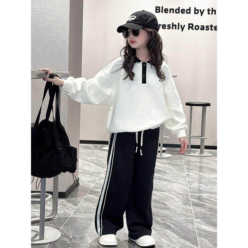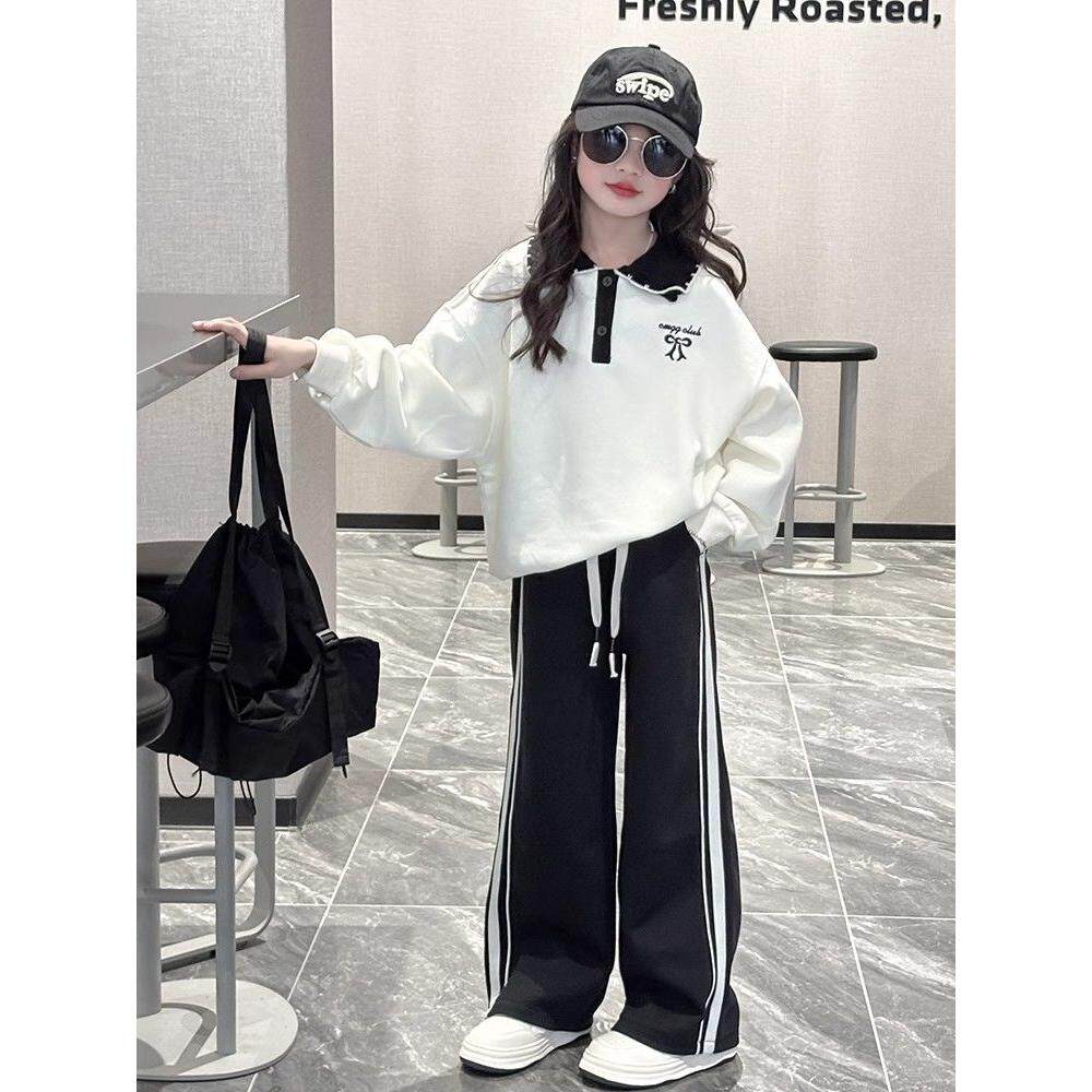 女童春装百搭新款显瘦学院风洋气儿童休闲运动春秋翻领卫衣上衣