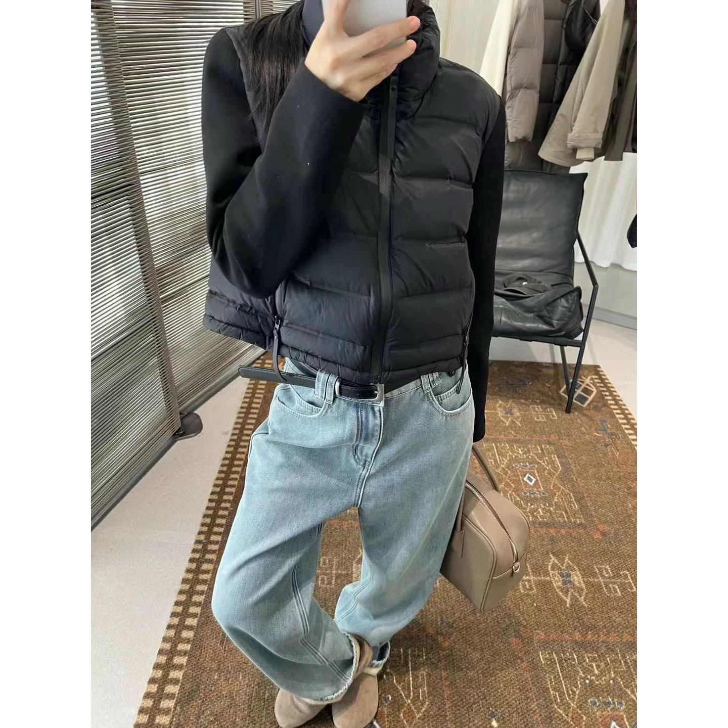 轻薄款排骨羽绒棉服拼接卫衣女立领秋冬时尚高级简约韩系外套潮