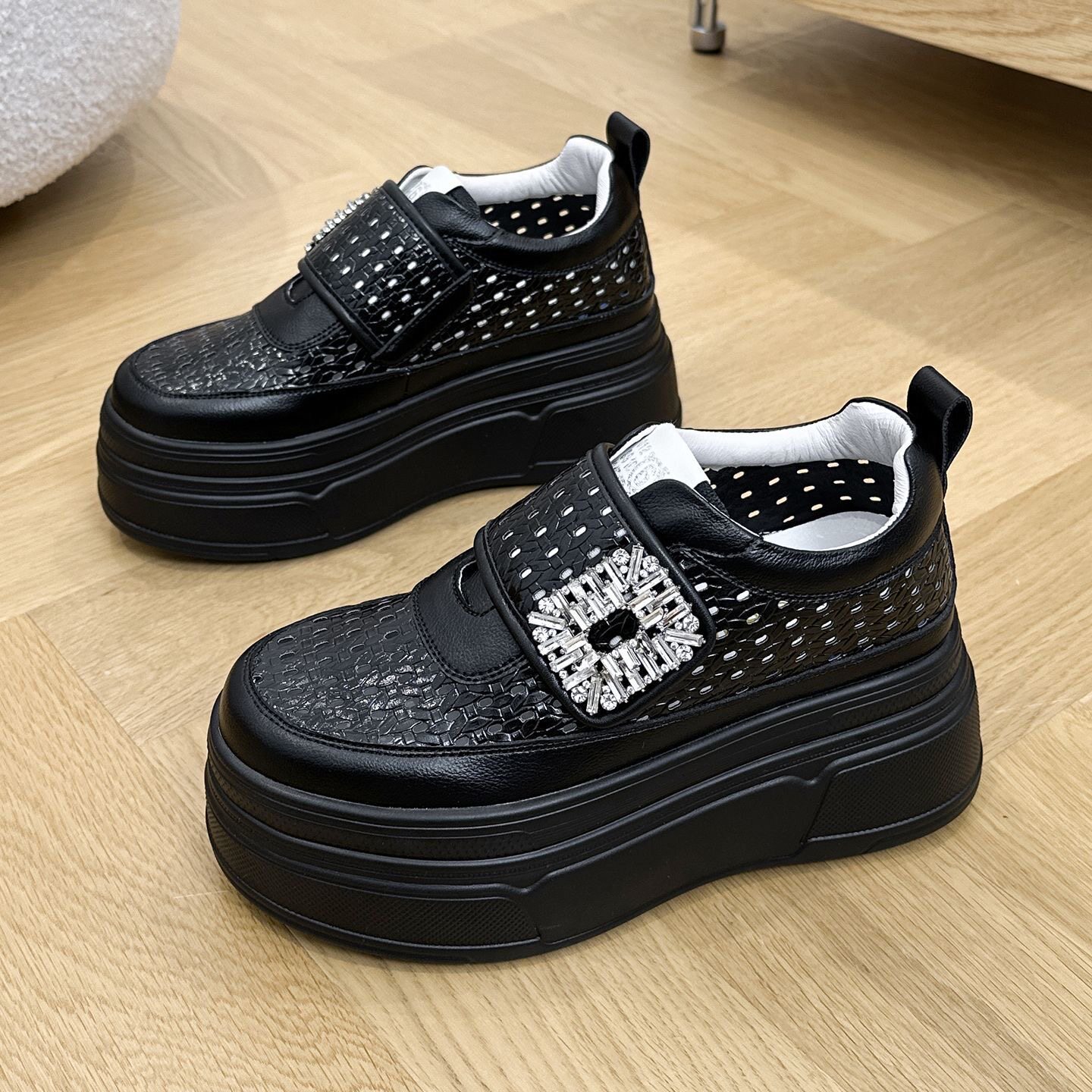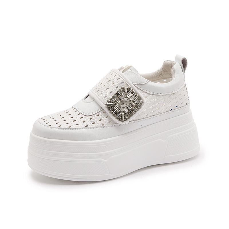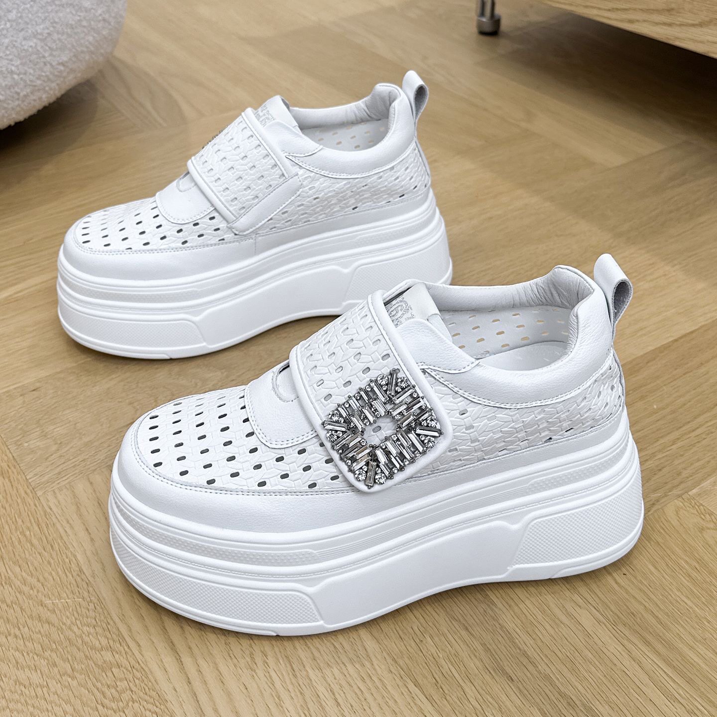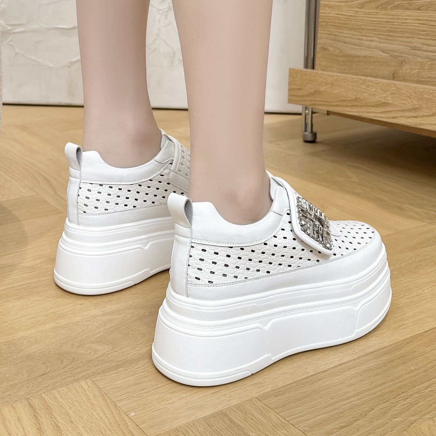 内增高魔术贴小白鞋女2026夏季新款镂空透气8cm小个子网面休闲鞋
