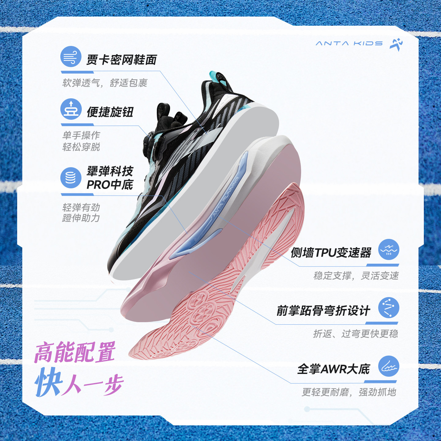 安踏儿童运动鞋女童鞋2026春秋新款女大童专业跑鞋纽扣透气跑步鞋