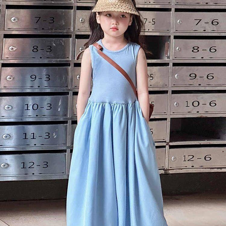 女童连衣裙夏季2026新款女孩韩系高级感夏装裙子简约小公主背心裙