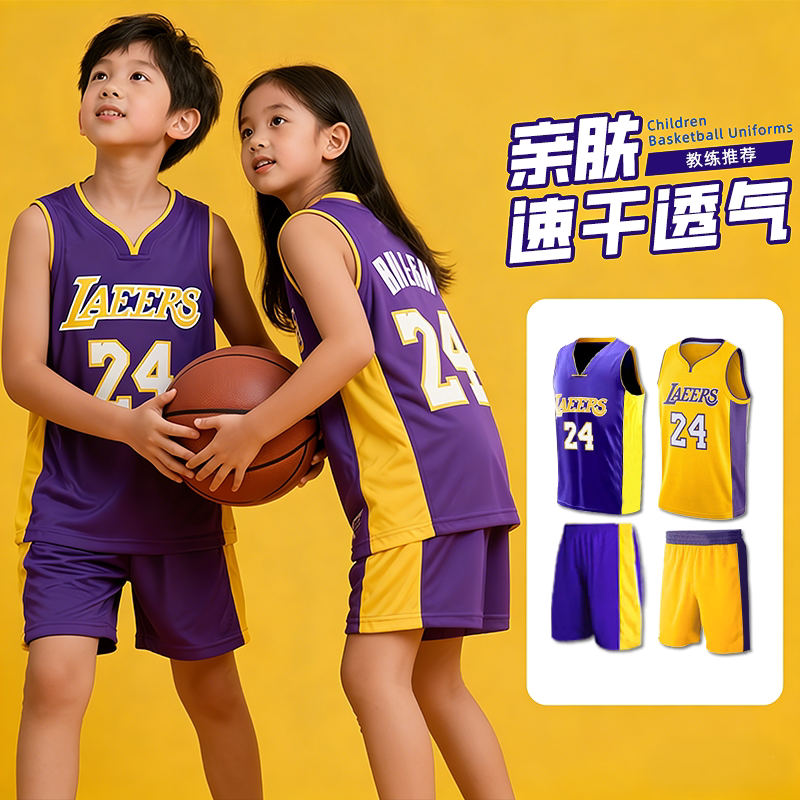 儿童篮球服套装秋冬四件套训练服男童女童库里詹姆斯科比球衣24号