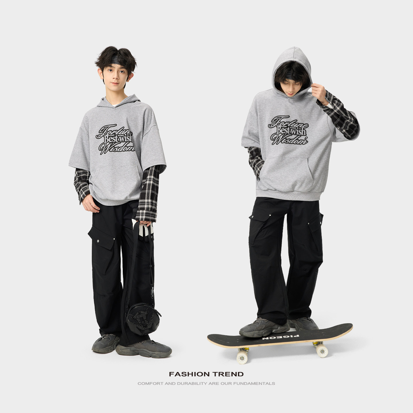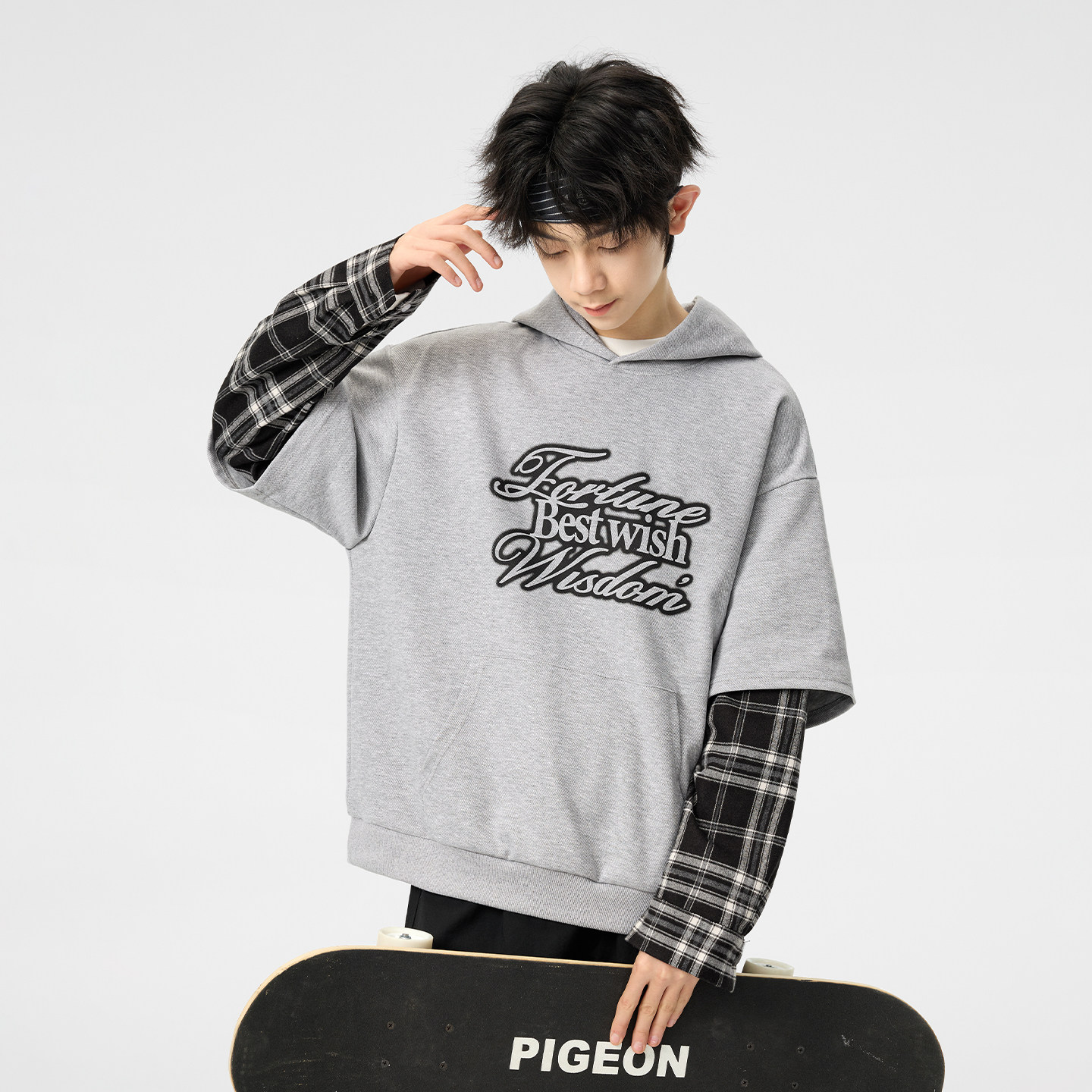左西童装青少年假两件连帽卫衣2026新款大童春季男童春装上衣男款