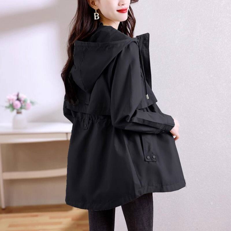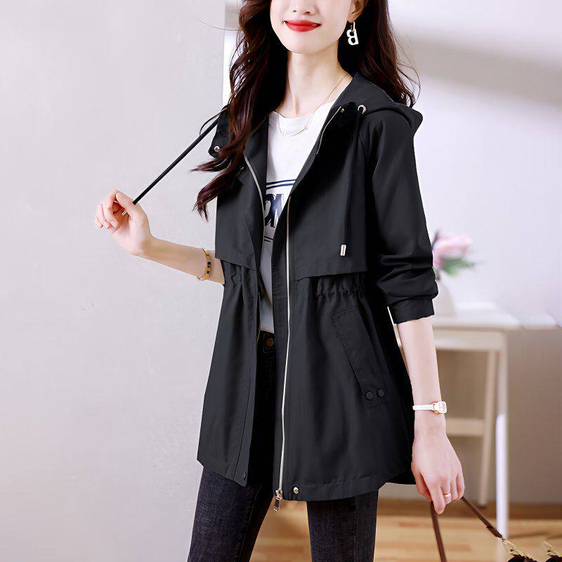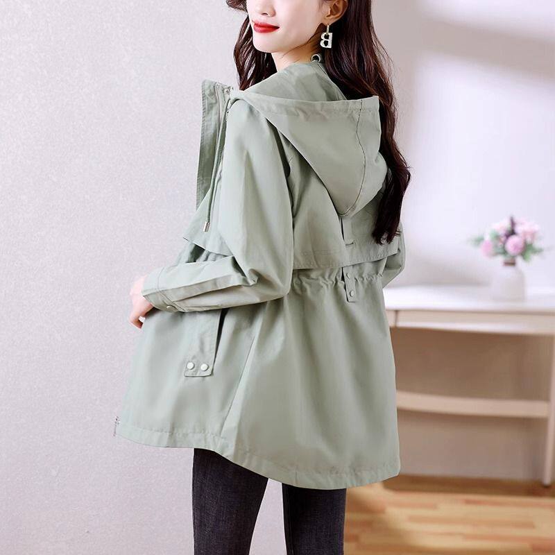 中长款风衣女款2026流行新款小个子春秋薄款修身连帽百搭气质外套