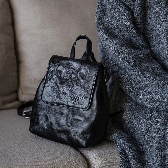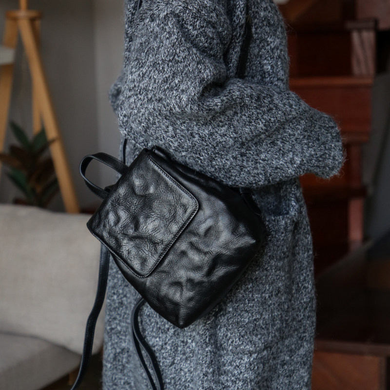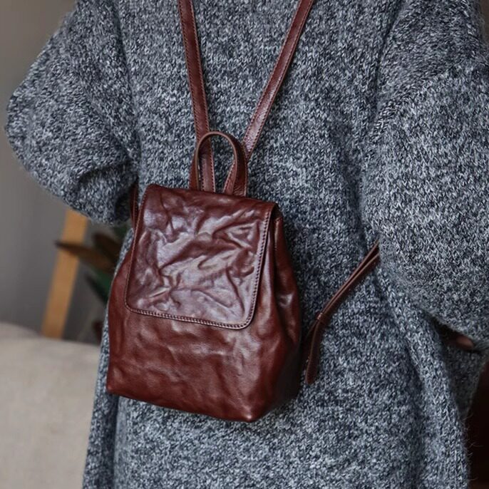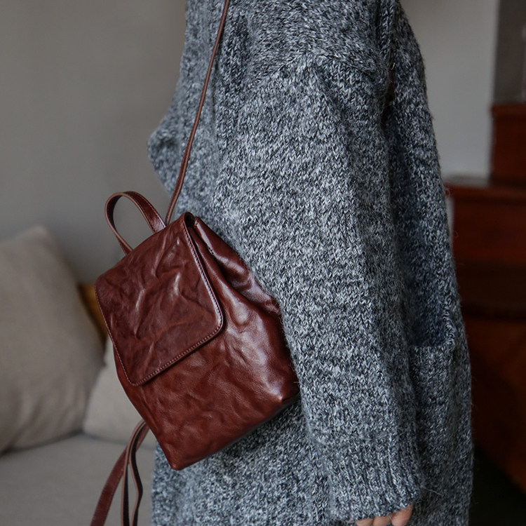 漫色复古植鞣头层牛皮小双肩包女真皮手抓纹小众设计休闲迷你背包