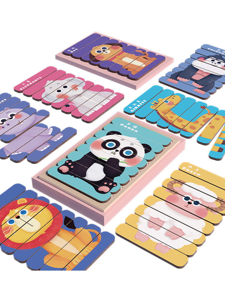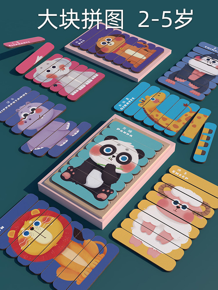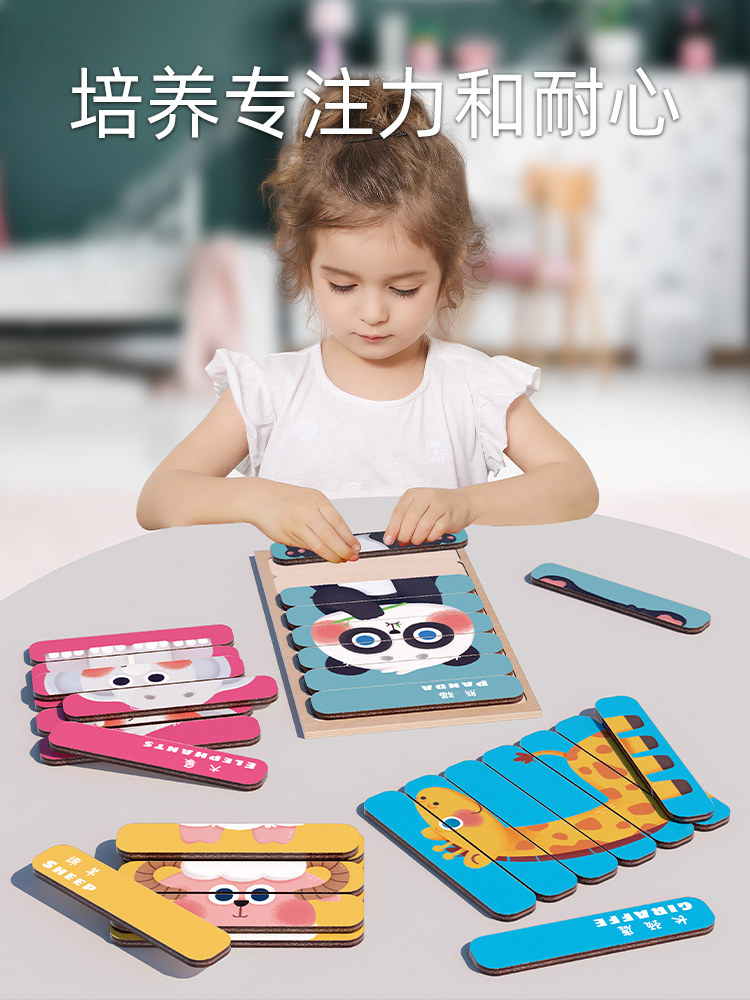 创意条形拼图儿童早教益智玩具木质1-2-3岁宝宝4男女孩5智力开发6