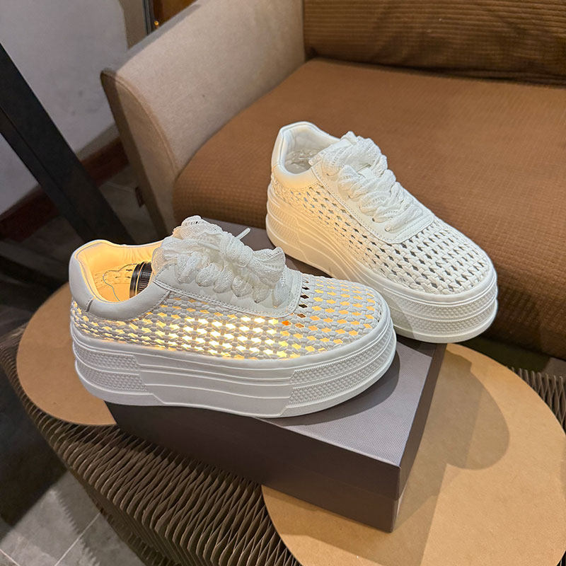 小白鞋女款2026新款夏薄款厚底女鞋透气配裙子的今年流行爆款板鞋