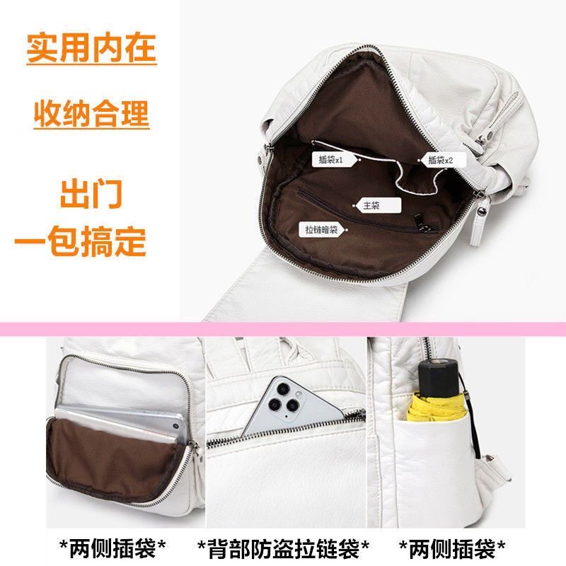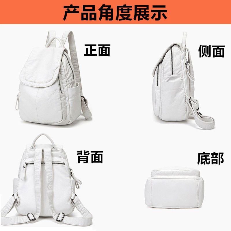 双肩包女2025年新款时尚百搭真皮旅行书包休闲软皮女士小背包白色