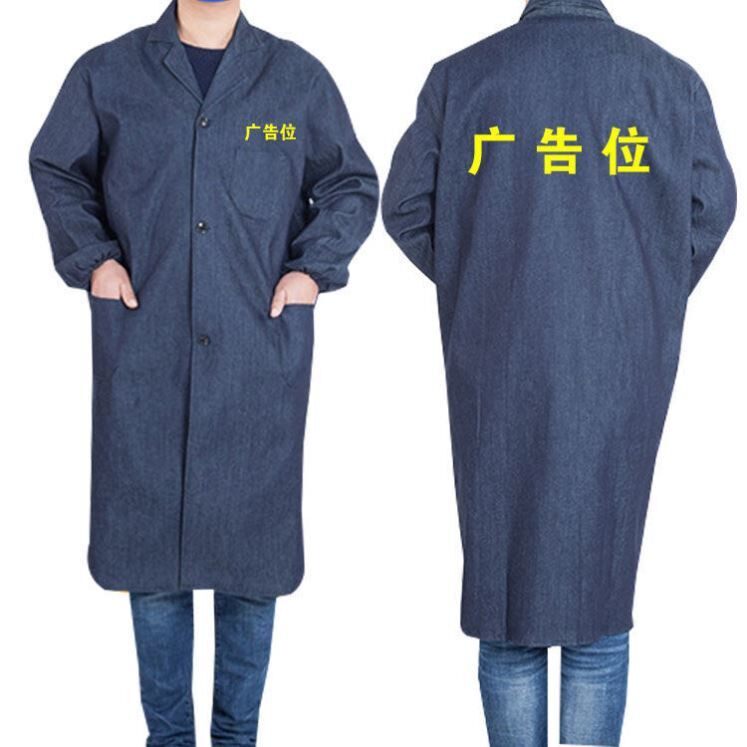 带帽棉牛仔大褂工作服男长款耐脏防尘外套服耐磨劳保服长褂男装