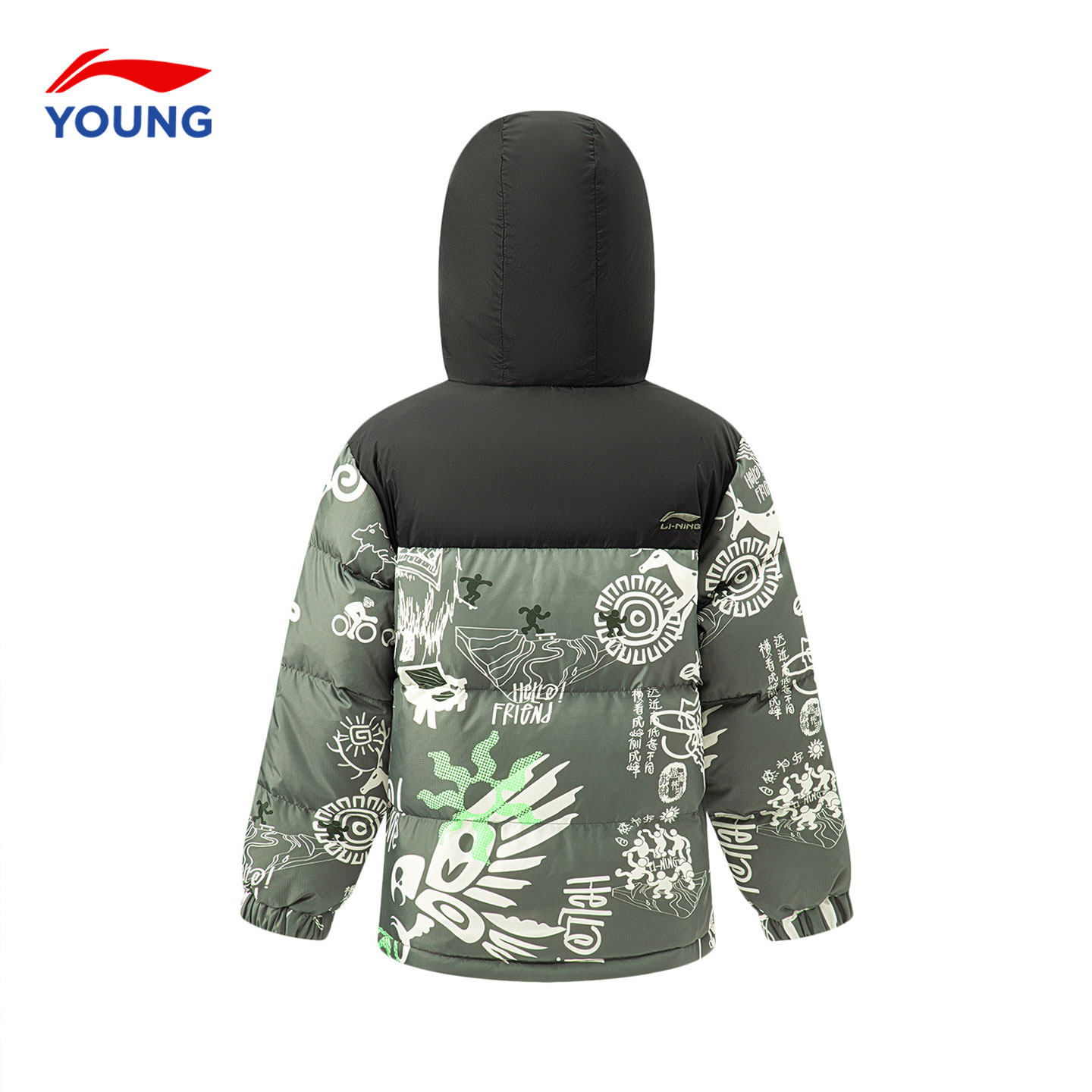 李宁儿童羽绒服男大童25新款冬季大童青少年学生迷彩鸭绒连帽外套