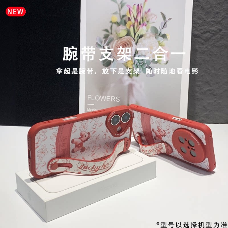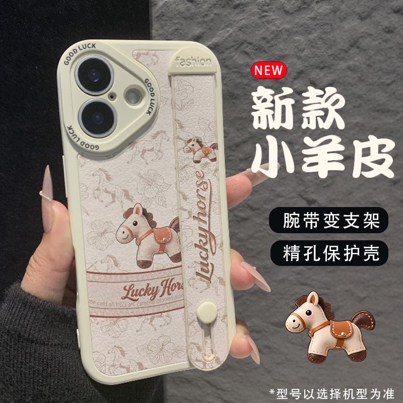 复古小马适用苹果17/16Pro/15promax手机壳iPhone14Pro女2026新款13腕带支架12硅胶全包11Pro防摔xsmax保护套