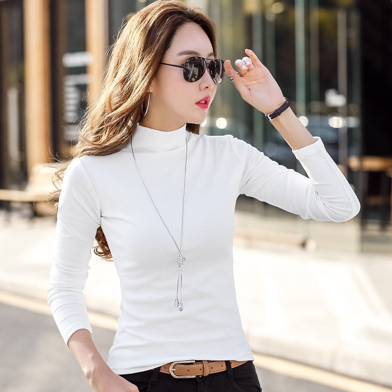 311线报网描述:纯棉半高领打底衫女春秋内搭