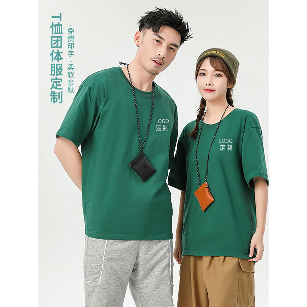 纯棉圆领T恤工作服定制印logo餐饮面馆酒店服务员奶茶快餐工装印